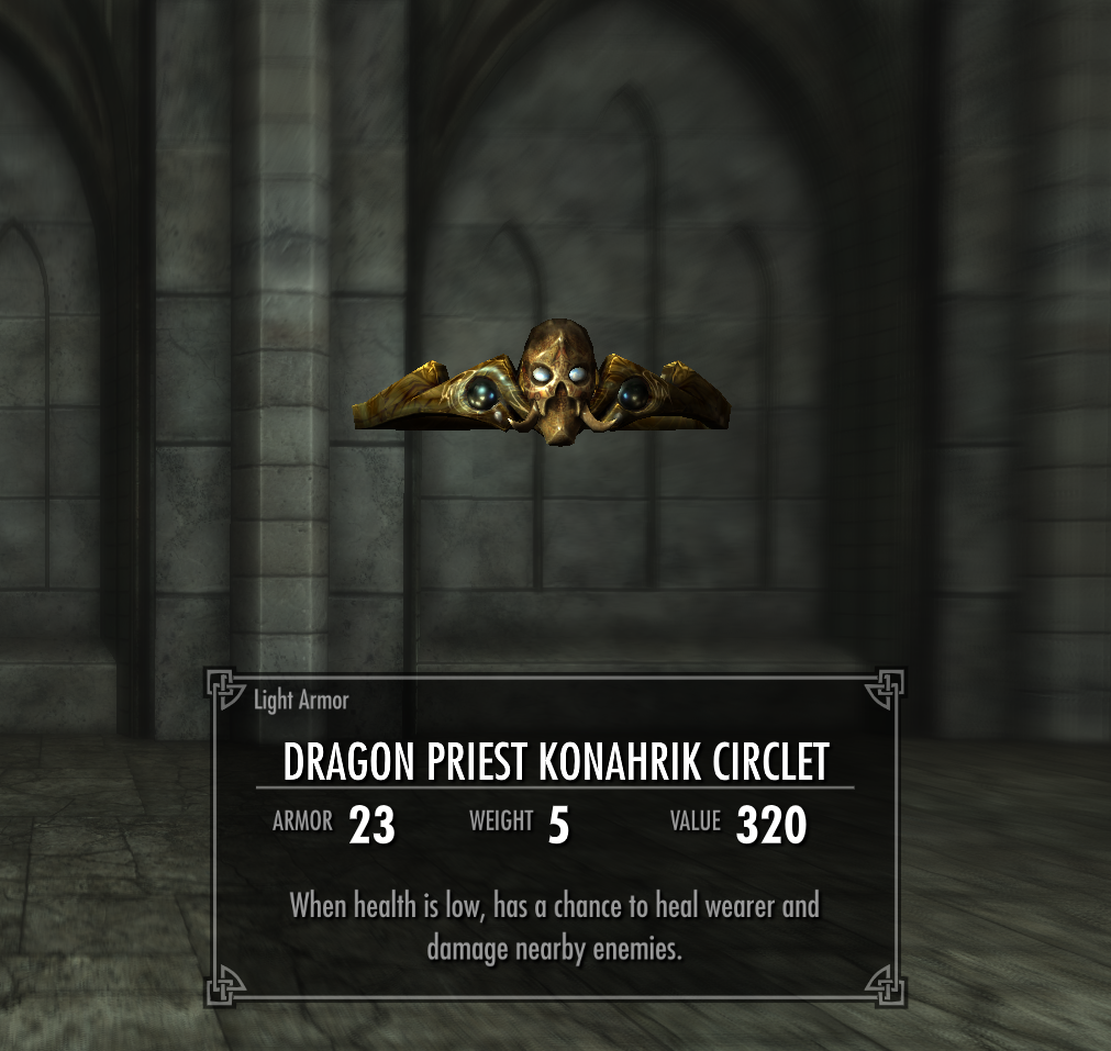 Этот мод делает вот что. Когда вы убиваете Драконьего Жреца и снимаете с него маску, то вместе с ней вы получаете обруч с такой же силой, что и у маски.