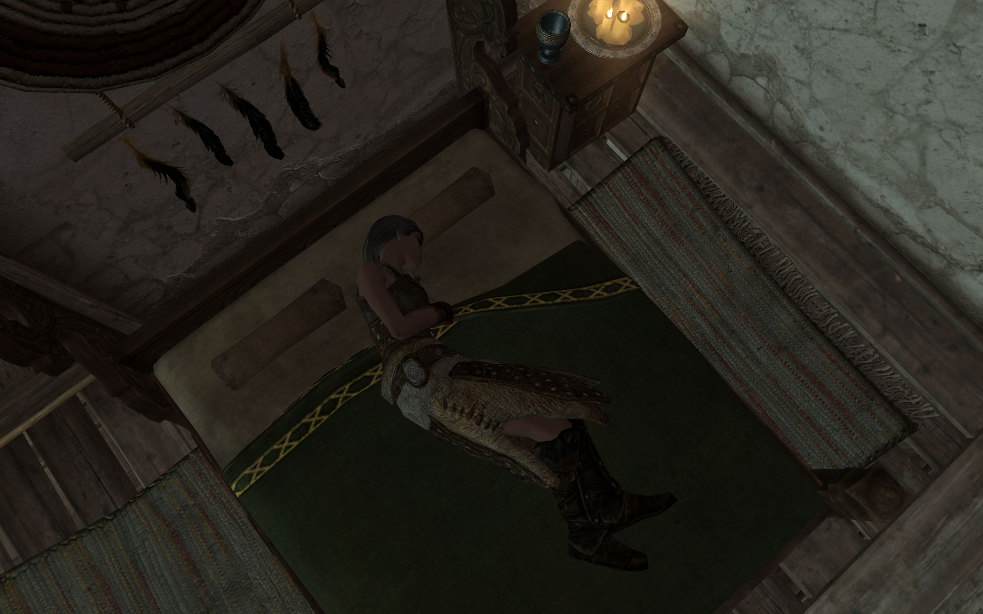 Существует некоторое количество модов, которые позволяют игроку принимать разные позы и осуществлять разные действия. Данный мод добавляет одну малую способность, которая вызывает меню выбора, предлагающее сесть, принять позу для медитации или лечь. В частности, возможно одной из самых полезных функций мода является возможность активировать меню сна в любом месте (на земле, на скамейке, даже на кровати, почему бы нет) с анимацией сна.