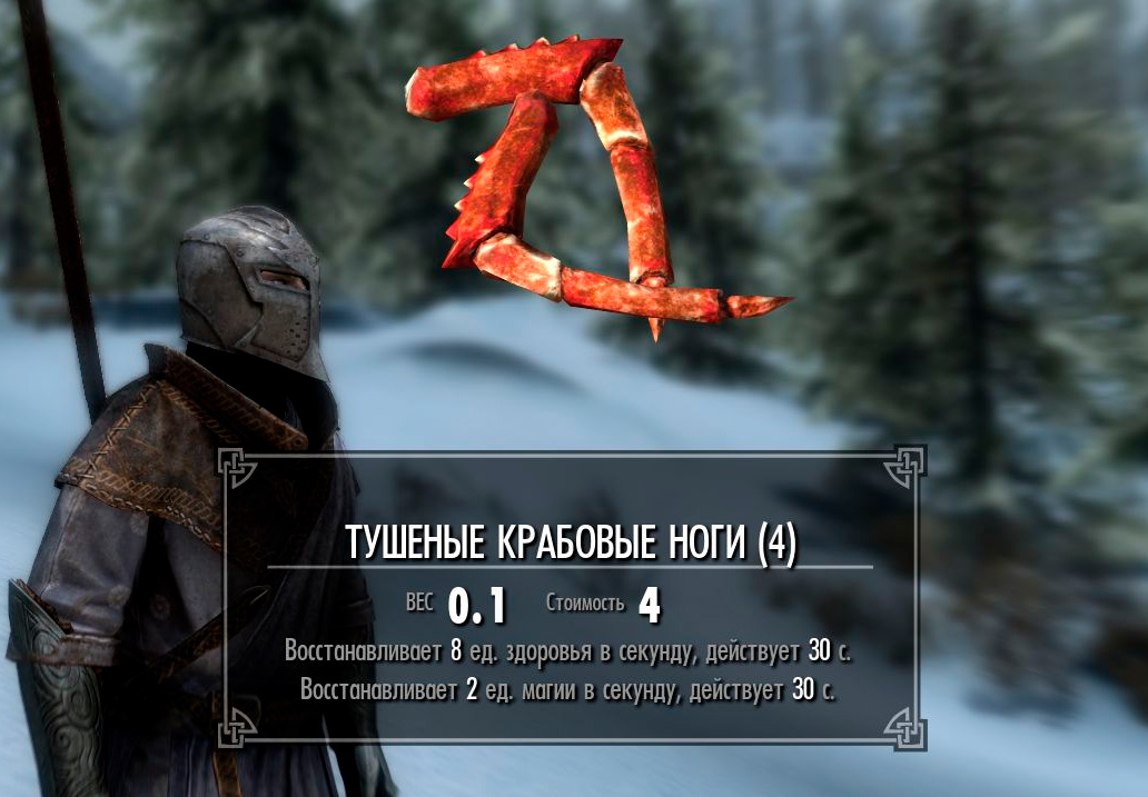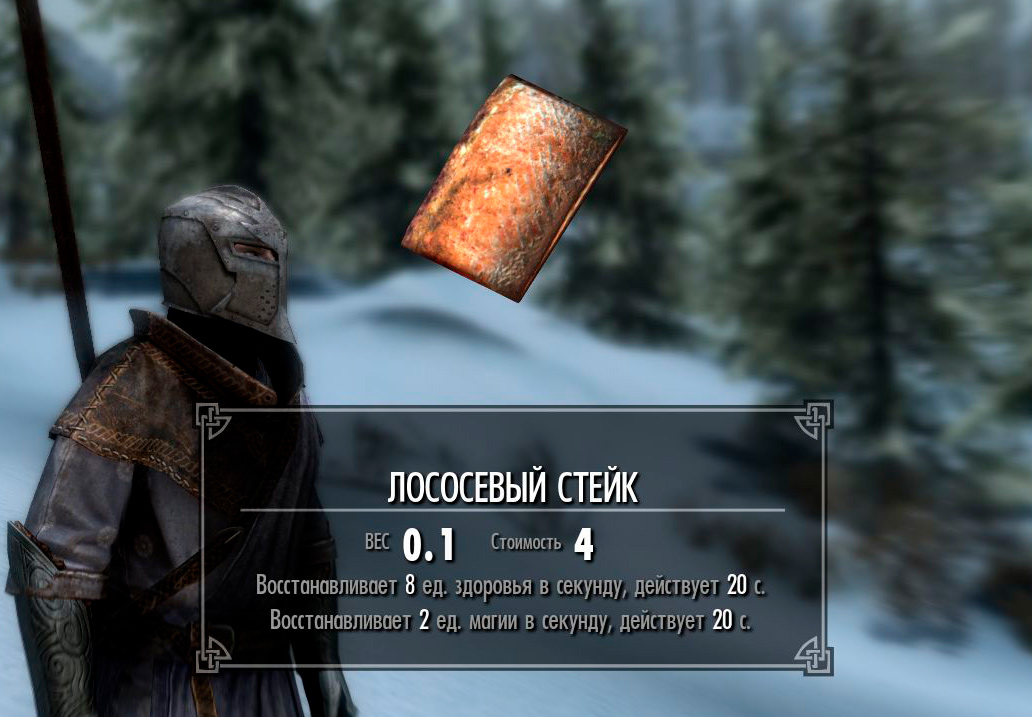 - Еда действует лучше. Чем сложнее рецепт и чем больше он требует ингридиентов, тем сильнее будет эффект восстановления здоровья, магии или запаса сил. Простая еда (овощи, сырое мясо) обладает самым слабым эффектом, более сложная (супы, жареное мясо) действует лучше, а комплексные, сложные блюда (дополнение "очаг") наделены самыми сильными свойствами.