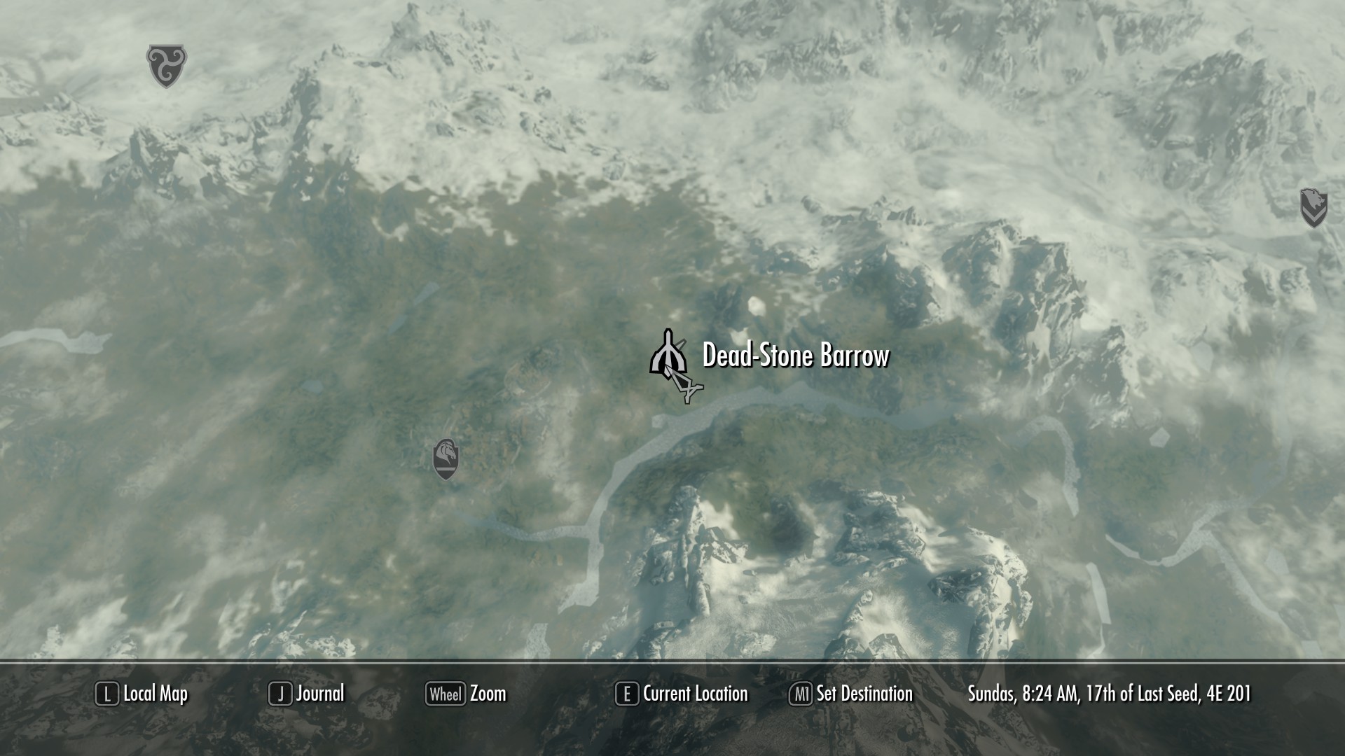 "Курган Мертвый Камень - это историческое кладбище недалеко от Вайтрана, где захоронено неизвестное количество жителей во времена первых периодов истории города. После того, как несколько исследователей исчезли во тьме катакомб, жители города перестали посещать это место, а страшные байки о нем стали популярными рассказами для любителей меда в Гарцующей Кобыле."
