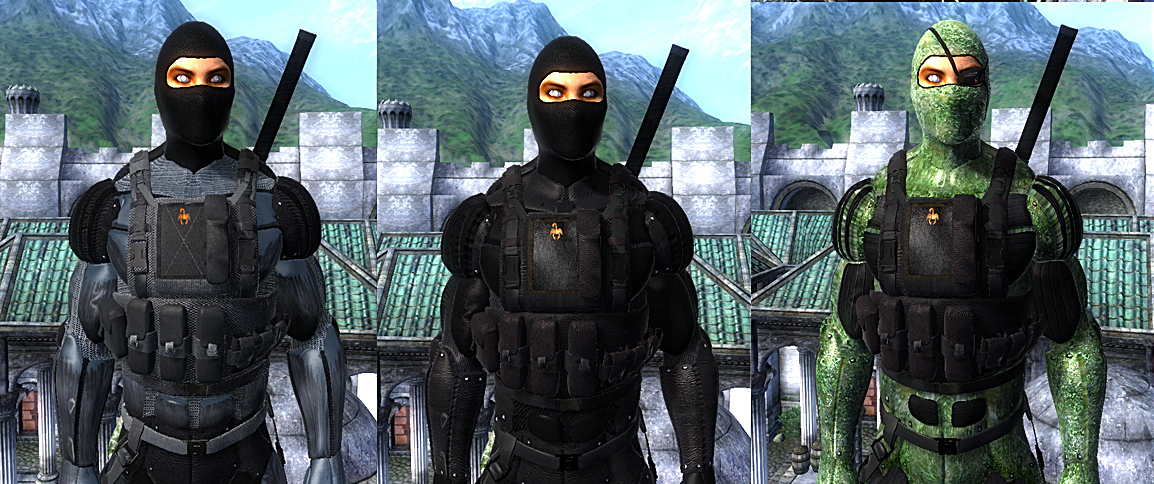 Данный плагин добавляет множество оружия и брони сделанной по мотивам игры "Metal Gear Solid 4". Найти все вы можете в глубинах Вилверина. Так же вы можете купить оружие в "Солдатской удаче", маски и жилеты в "Божественной Элегантности", а доспехи в магазине "Лучшая защита", что в Торговом районе Имперского города.