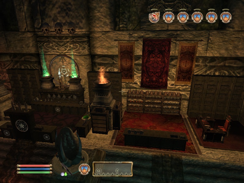 Библиотека. Разделена на 2 части, во второй находятся все артефактные книги игры (Мистериум Заркса, Огма Инфиниум, четырехтомник Комментариев Каморана, 3 тома Пророческих выводов, редкие и уникальные книги и т. д. Изначально мод делался мной для меня (высокоуровневого персонажа, который прошел игру на 300%) и это более чем вписывалось в рамки моего перса, поэтому если вы такой же, эстетических и моральных проблем, спойлеров у вас не будет. Если вы вдруг новичок, ну, можете туда просто не ходить.