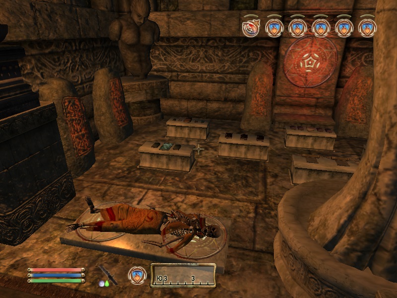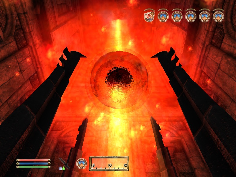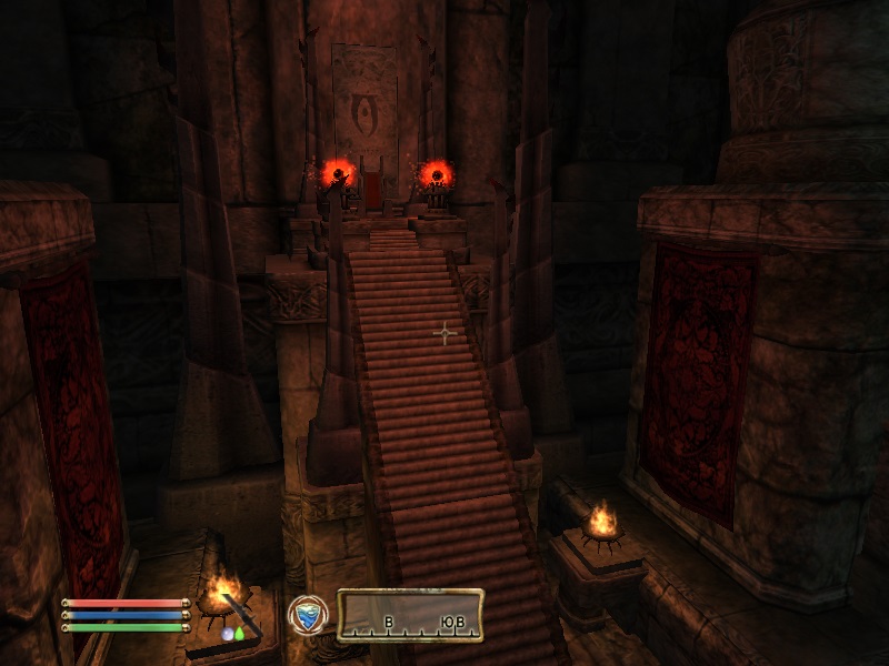 Зал Врат. Отсюда идут порталы в самые отдаленные части игрового мира. Первый портал ведет в Тестовую локацию (Соколиный Рай), откуда вы можете попасть также в локацию "мир Тодда". Второй портал ведет в Зал Эпох, под имперским дворцом и вот с ним будьте очень аккуратны. Если вы еще не прошли квест Гильдии Воров "Грандиозное Ограбление", то не выходите за пределы помещения, в которое попадете из Зала Врат, чтобы не поломать квест. Также не пользуйтесь порталами в Мискарканд, если не прошли квест основной сюжетки "Великий Велкиндский Камень" и в Маладу, если не прошли линейку квестов от Умбакано. Третий портал - в пещеры Брумы, для быстрого и скрытного перемещения в регион вокруг Брумы и в сам город.