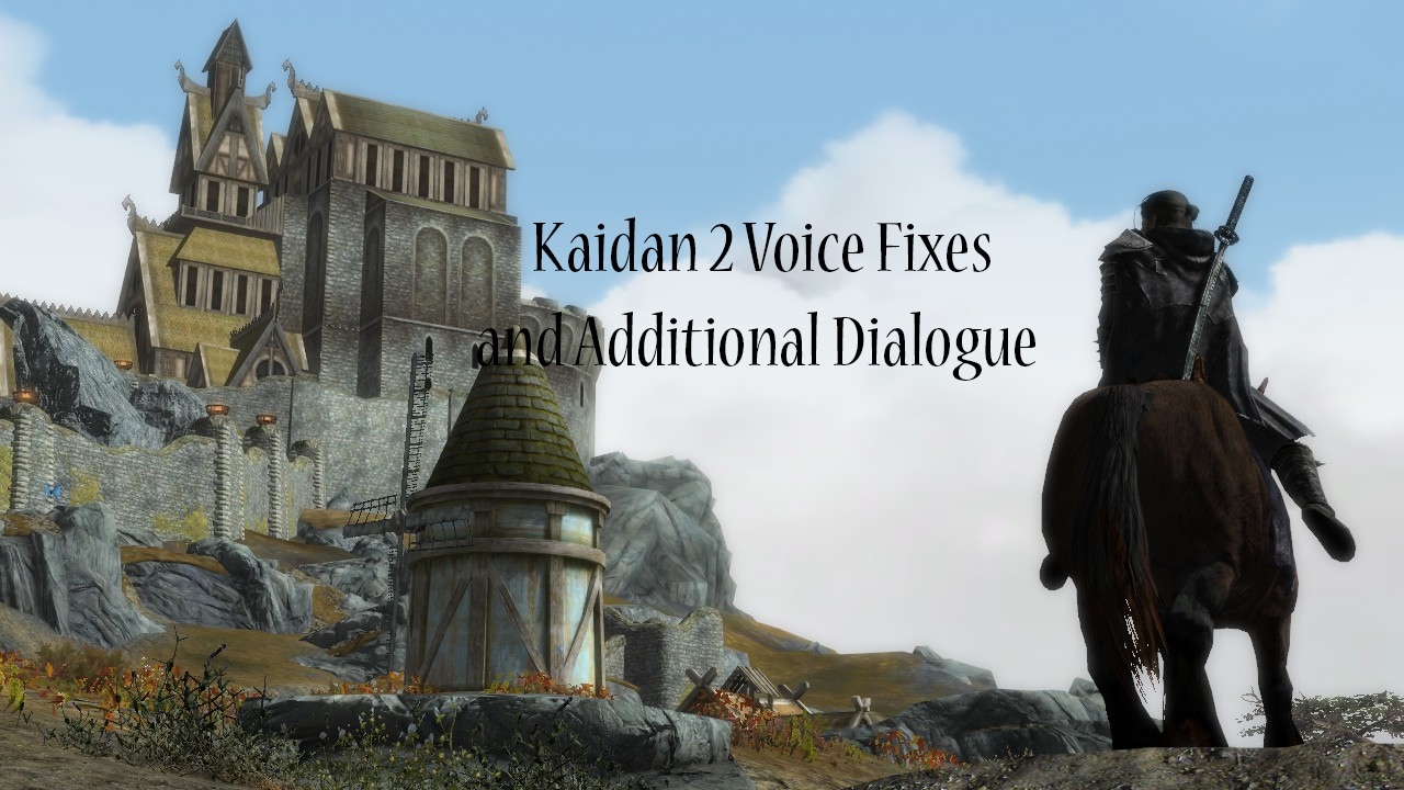 Kaidan 2 Extended Edition - это исправление для диалогов с нечеткой или отсутствующей озвучкой, а также множество новых диалогов для мода Kaidan 2, включая новые диалоги для DLC Dawnguard и Dragonborn. В моде более 5000 исправленных или новых реплик. Это реплики во время боя, о погоде, о локациях и фракциях и несколько романтических реплик. Для всех новых фраз используется голос актёра озвучки из Kaidan 2, который согласился записать озвучку реплик для этого мода.