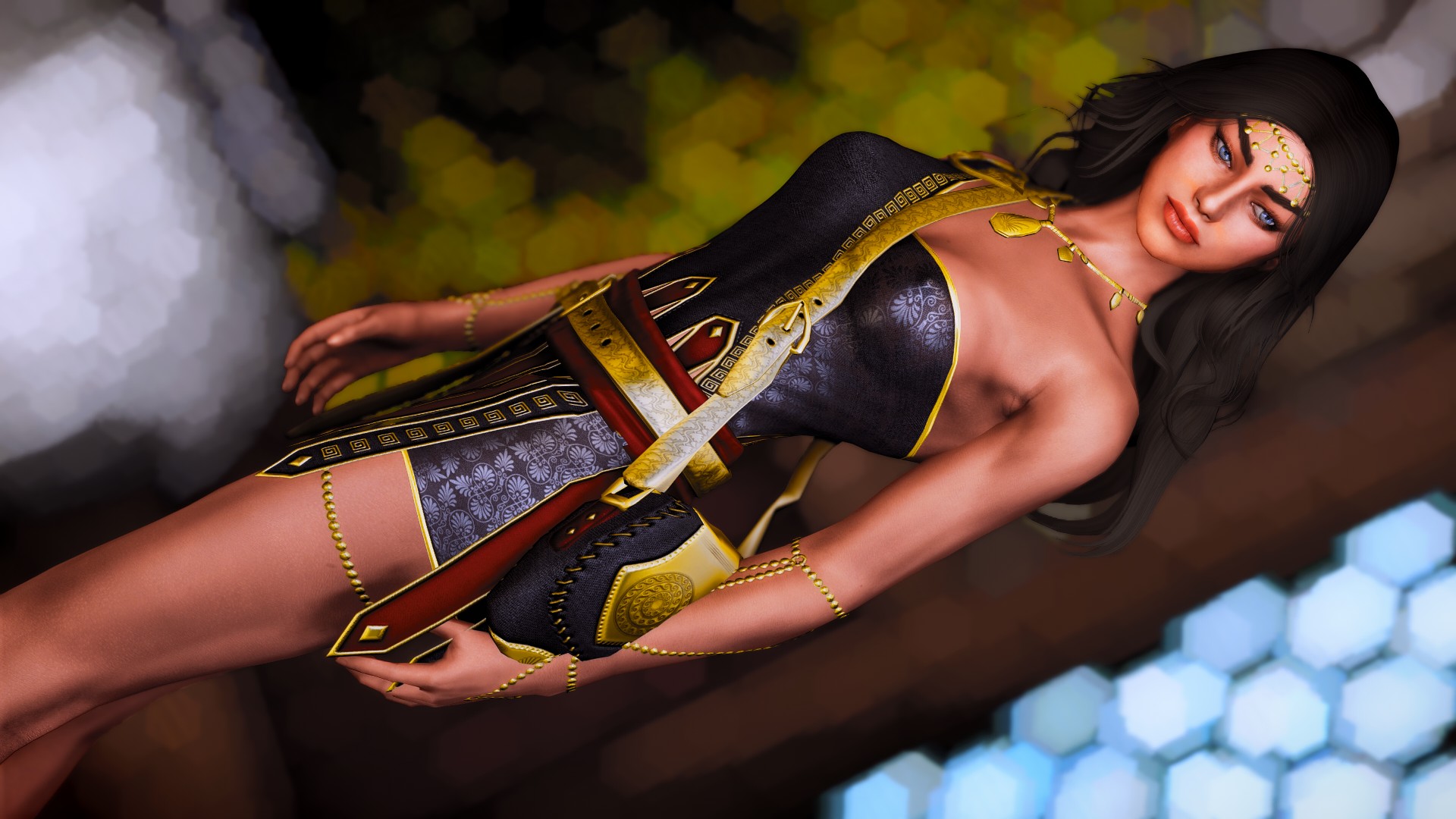 Мод добавляет в Skyrim лёгкую эбонитовую броню для женских персонажей с уникальным арбалетом, болтами и декоративными мечами в стилистике ведьмака.