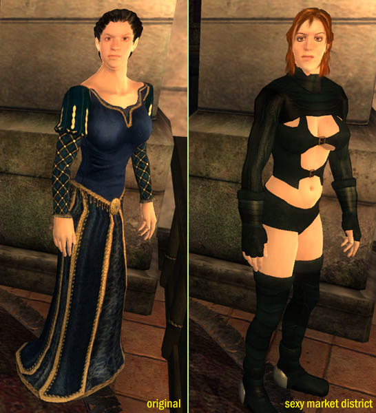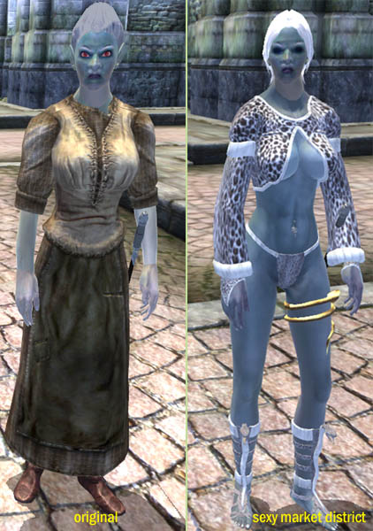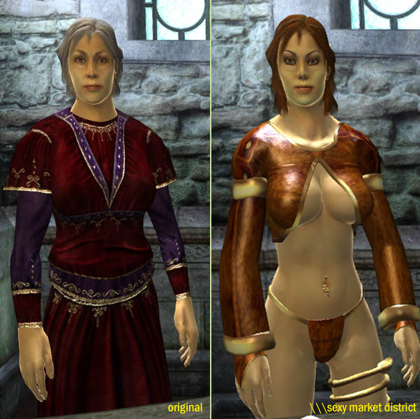 Так как большинство из нас, обычно, мчится мимо магазинов в нашем прекрасно выглядящем Имперском городе, то справедливо заметить, что торговцы, с которыми мы часто имеем дело, не поддерживают нашу высокую моду и одеты в какое-то тряпьё, тем самым не вызывая особых интересов. Этот простой мод делает лица более серьёзными, улучшает волосы, лицо, и одежду шести главных NPC's в Торговом районе Имперского города. Теперь они выглядят молодыми, сексуальными, взрослыми и горячими!