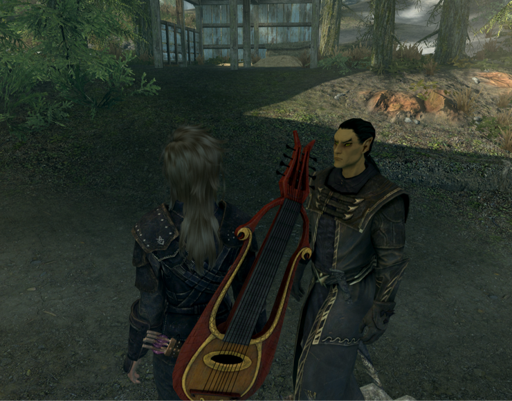 Талиесин повел отряд Талмора к святилищу Талоса, расположенному к югу от озера Илиналта. План состоял в том, чтобы произнести речь и убедить верующих прекратить поклоняться Девятому Богу...