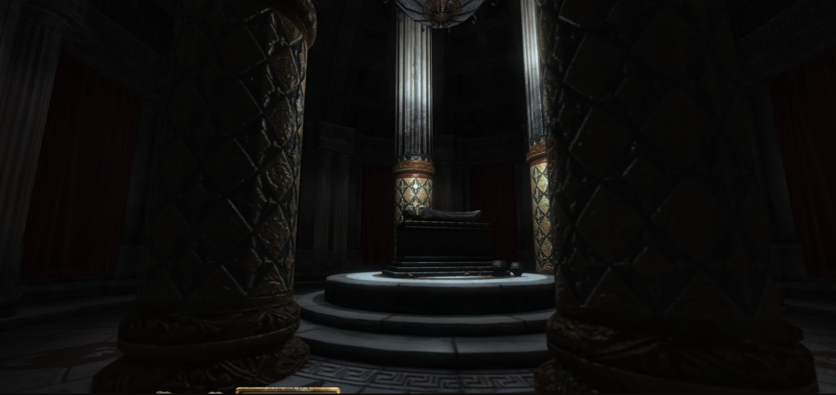 Здесь есть ключ, открывающий вход в его верхние покои, вместе с его одеждой и обувью. Но вам придется ограбить саркофаг императора, который охраняется и заперт дворцовой стражей в мавзолее.