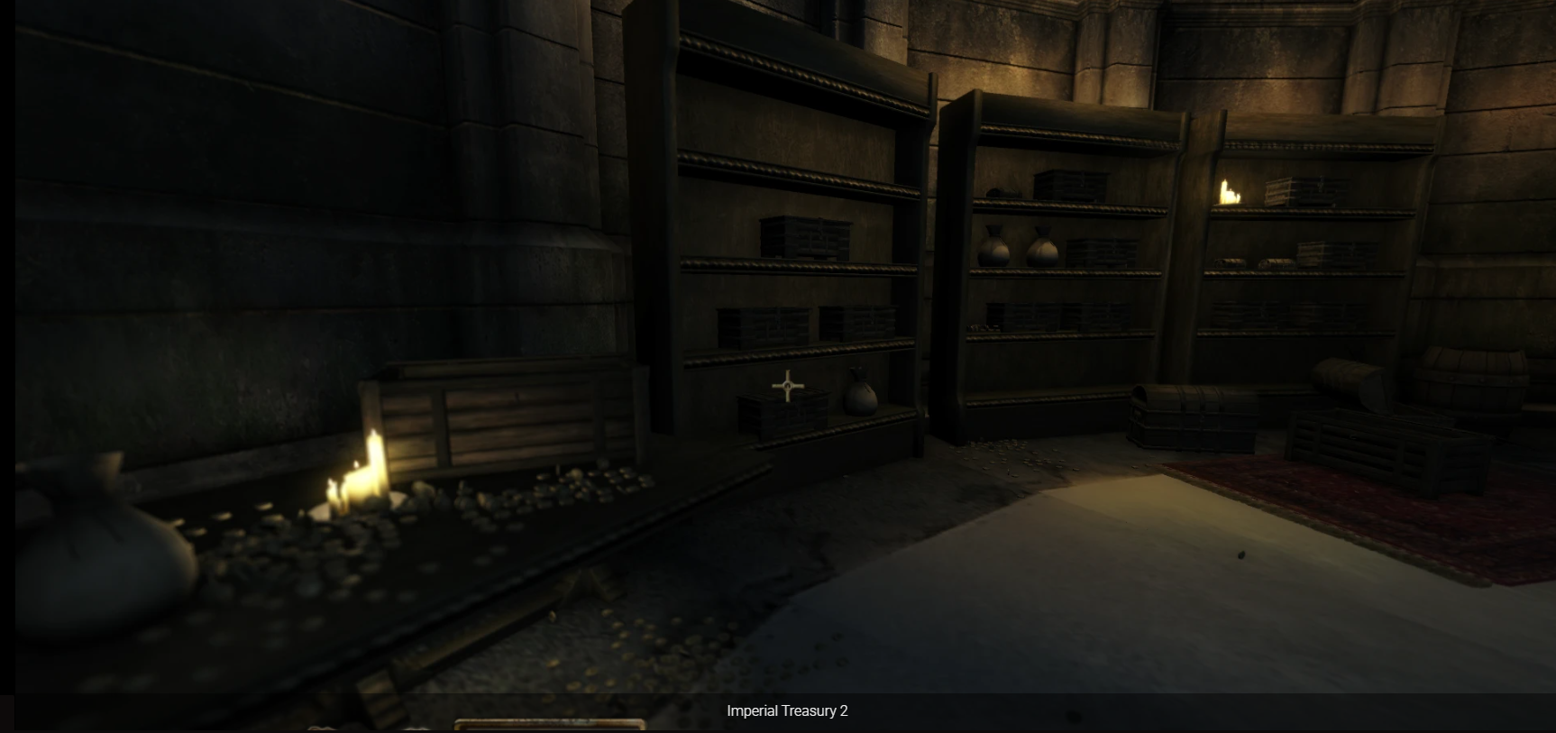 - Имперская сокровищница, где хранятся все богатства Империи, занесенные в журнал, под очень строгой охраной. Удачи при попытке обокрасть ее. Потребуется активация финального квеста Гильдии воров, у Евангелины Беаник в кармане имеется ключ.