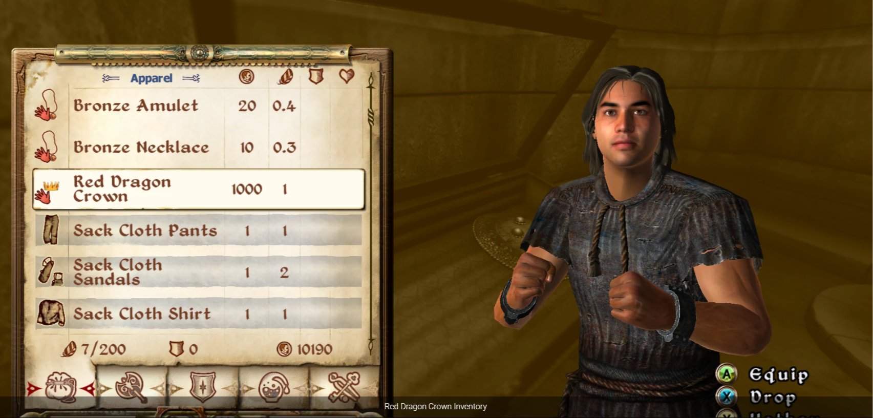 - Корона Красного Дракона, которую император обычно надевал в определенных случаях, лежит в его покоях. Примечание: Пока что не пригодна для ношения, просто ценный предмет, который вы можете продать для погружения.