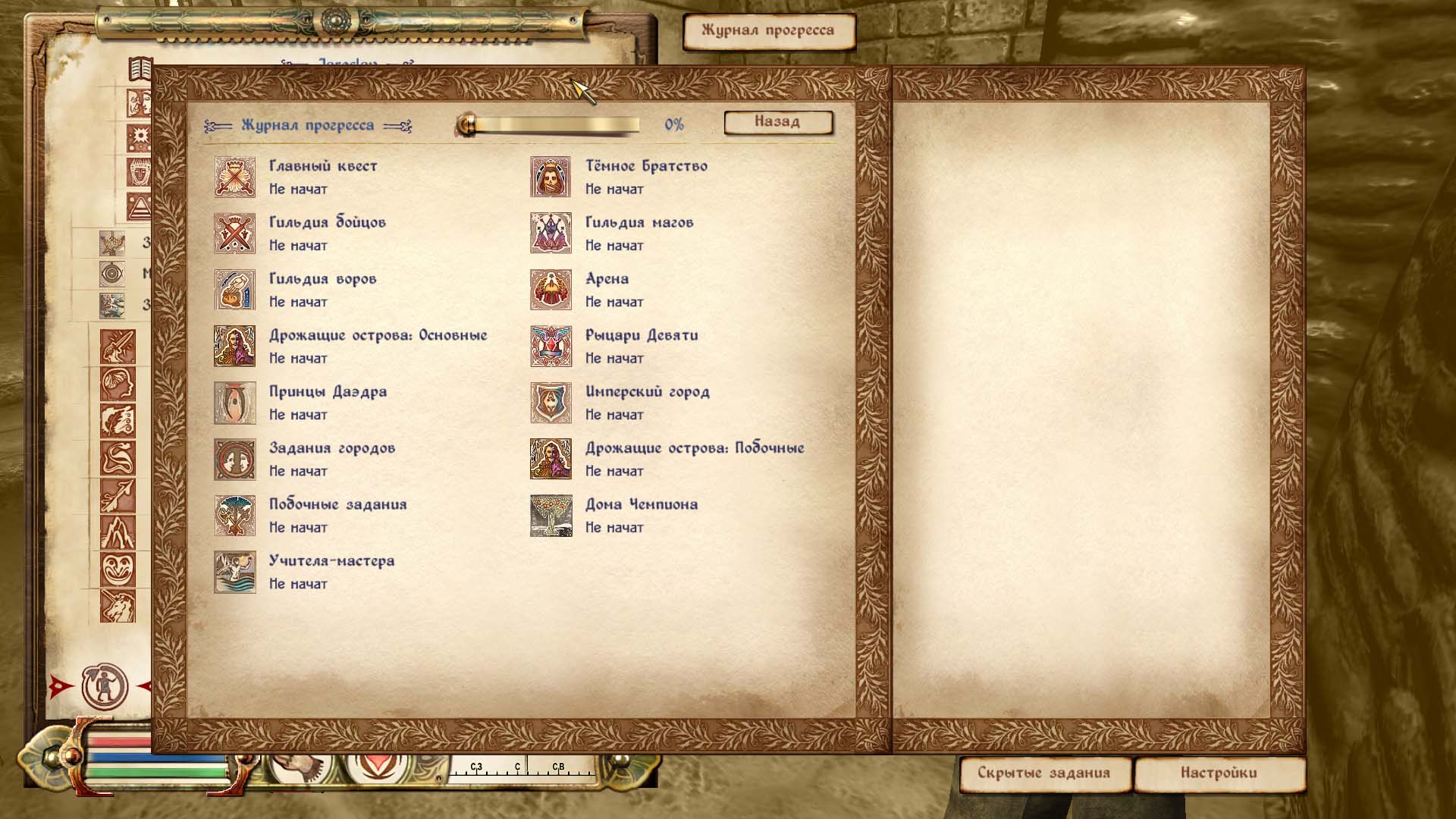 - Хотя навигация по меню с помощью клавиатуры/геймпада полностью функциональна, есть некоторые незначительные нюансы. При прокрутке левой панели необходимо явно нажимать кнопки влево/вправо для выбора левых/правых элементов. Если вы обнаружили, что меню квестов потеряло фокус, попробуйте войти в него заново.