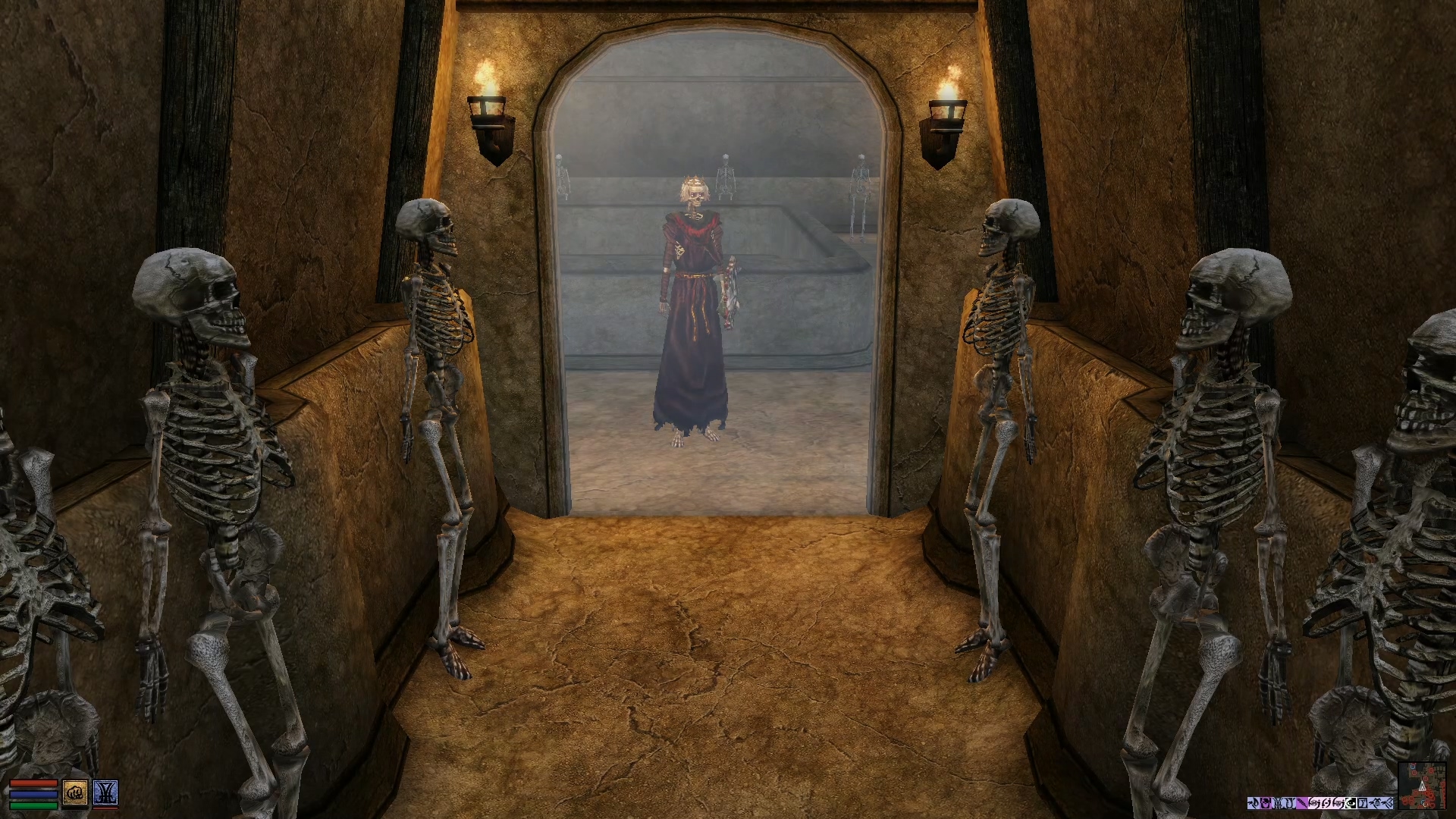 Рядом с главным входом будут стоять две Дреморы и Ксивилаи - поговорите с Ксивилаи и он отправит вас на место назначения, то есть в Мертвые Земли.