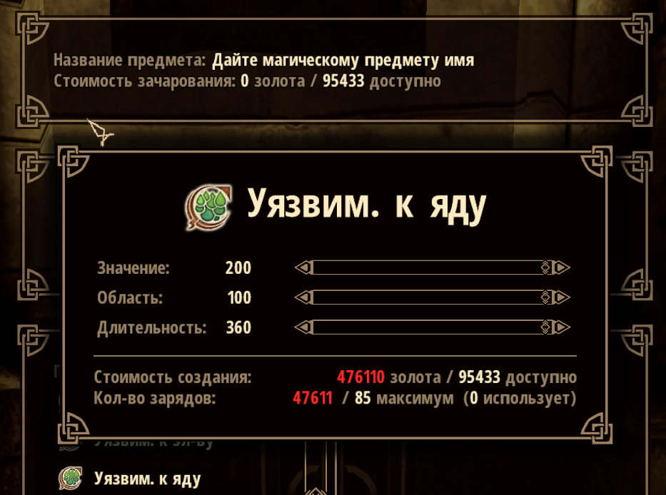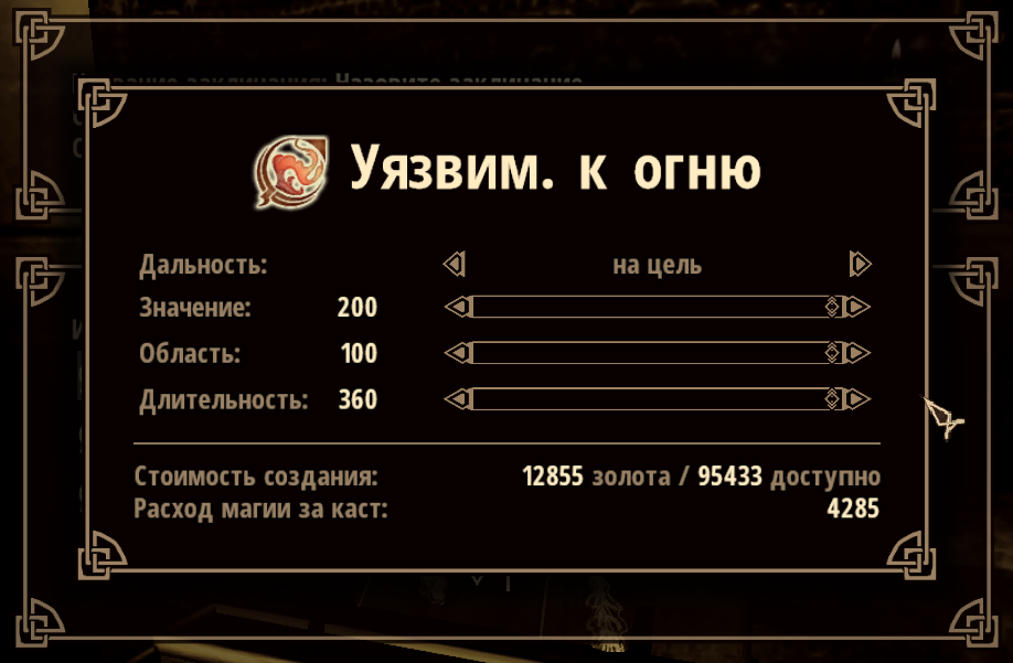При необходимости можно самостоятельно настроить силу заклинаний, область действия и длительность. Для этого необходимо открыть в блокноте файл enchantmentsetting_menu.xml.