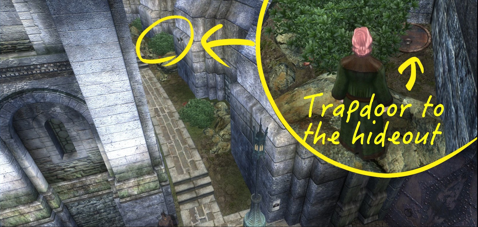 Мод добавляет небольшое убежище в Торговый район Имперского города. Подойдёт для начала игры, когда у персонажа ещё нет ни одного дома и негде хранить вещи.