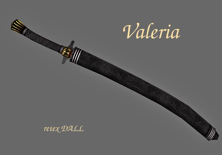 Этот мод - второй изогнутый клинок в моей коллекции мечей. Классические клейморы и прямые мечи - это то, что я, в основном, использую, но совершенная красота изгибов Валерии будет большим искушением даже для самых ярых поклонников прямых мечей. Так или иначе, это меч - один из лучших ятаганов Обливиона и "маст хэв" для любителей ятаганов, а также больших тулваров.