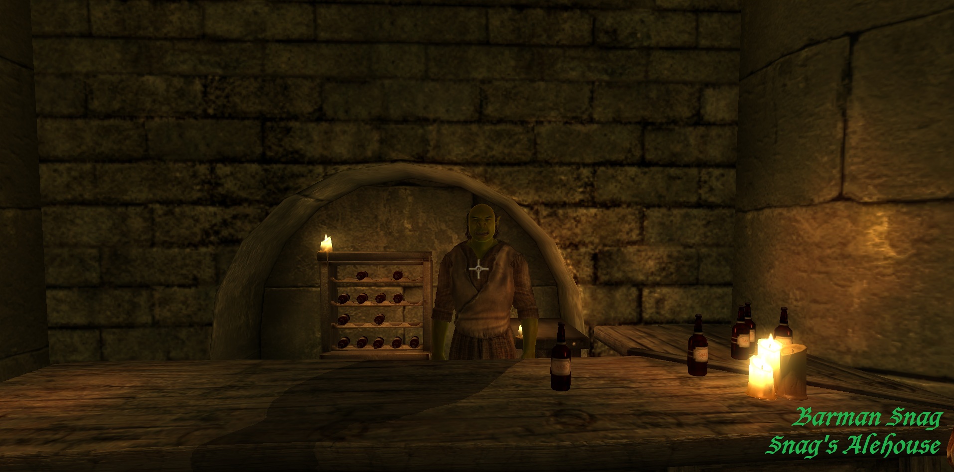 Пивная Снага - маленькая таверна, расположенная в канализации. Снаг, владелец пивной, торгует со всеми, но денег у него не так уж и много. Так же тут есть торговцы. предлагающие товары членам Гильдии Воров, которые часто посещают таверну. Иногда в таверне случаются драки. Если хотите устроить таковую, поговорите со Старгелом. Но будьте осторожны: не убивайте посетителей.