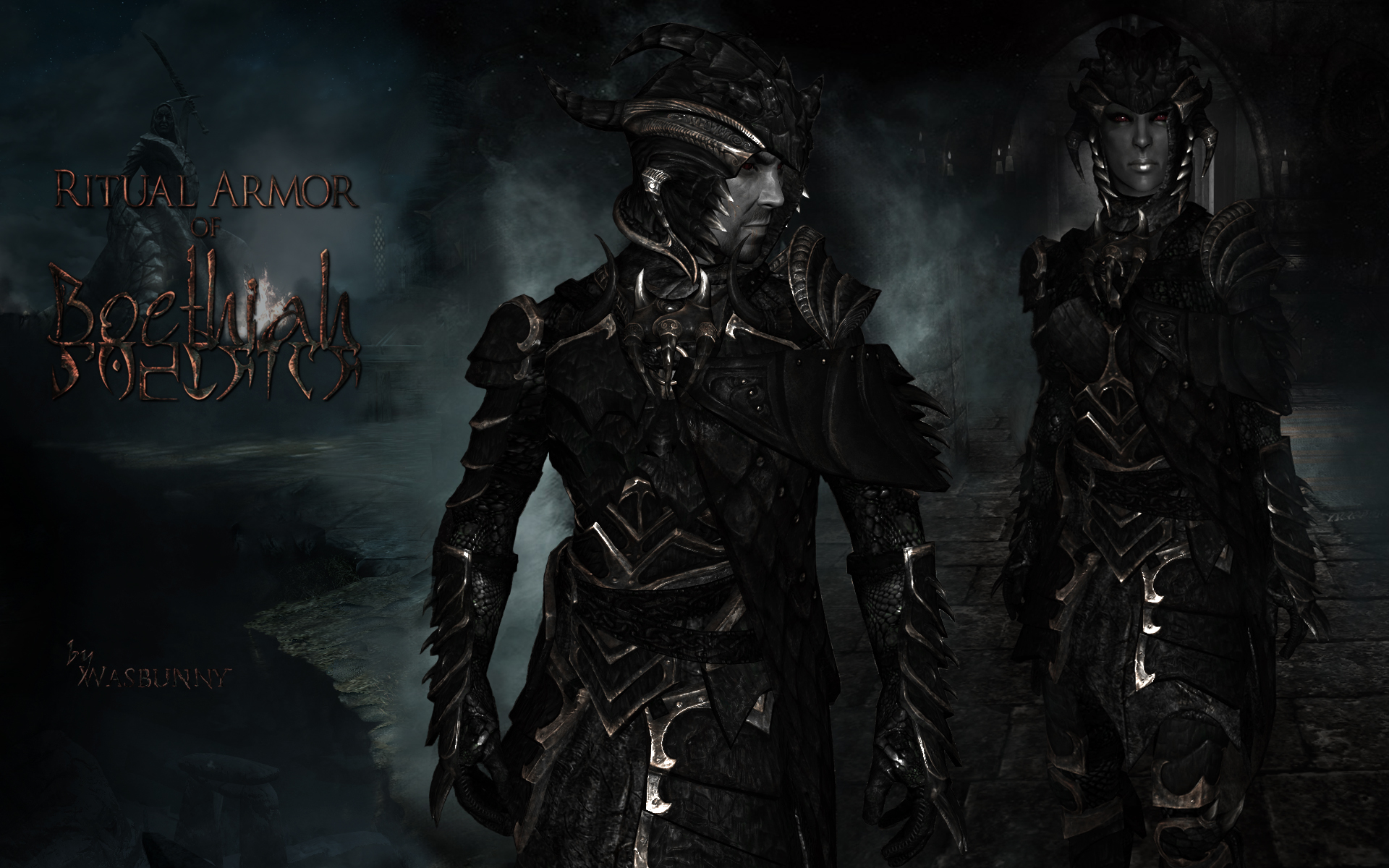 Ритуальная броня Боэтии изначально была разработана темным эльфом-культистом, поклонявшимся даэдрическому принцу Боэтии. Ее конструкция вновь была открыта (при нахождении, казалось, утерянной книги в Часовне Боэтии) и изменена с использованием останков черного дракона для усиления. Только Воин Боэтии обладает уникальными знаниями, необходимыми для создания этой загадочной брони.