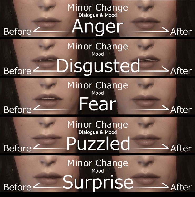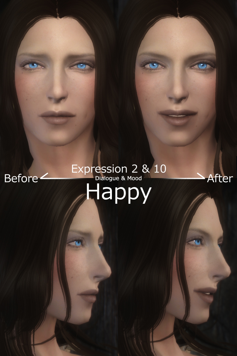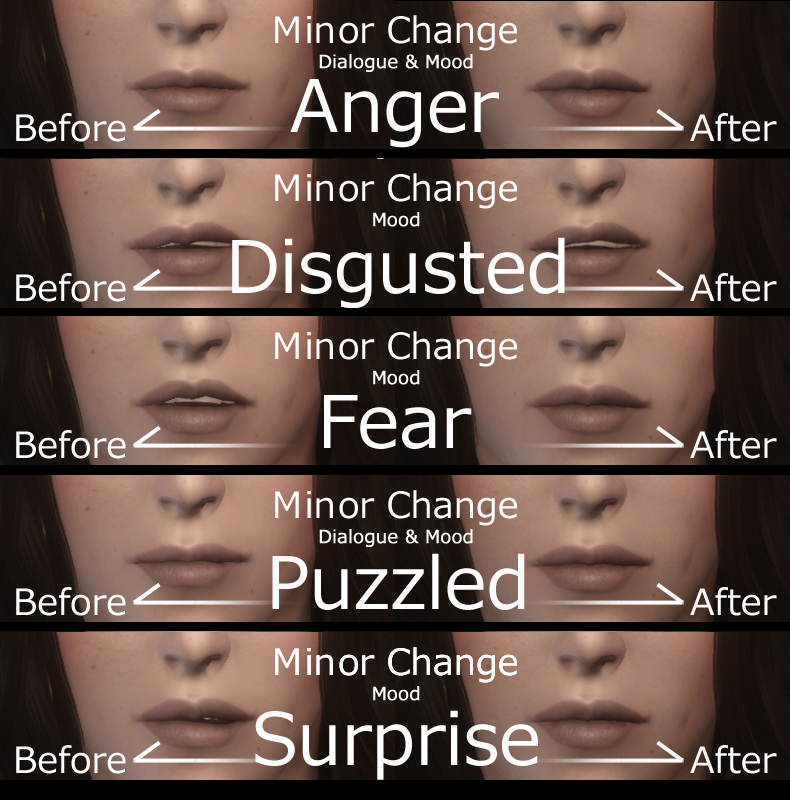 Мод изменяет лицевую анимацию женских персонажей (кроме аргониан, каджитов и орков), а конкретнее движение губ и мимику в целом. Рекомендуется использовать с модом Smile in HD