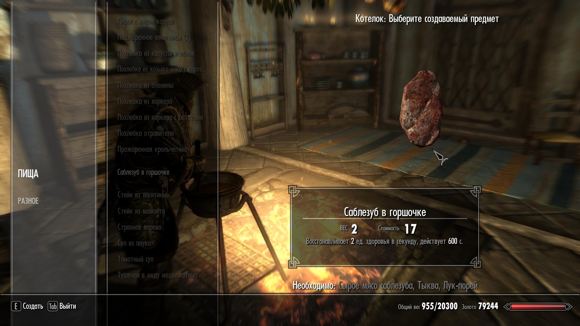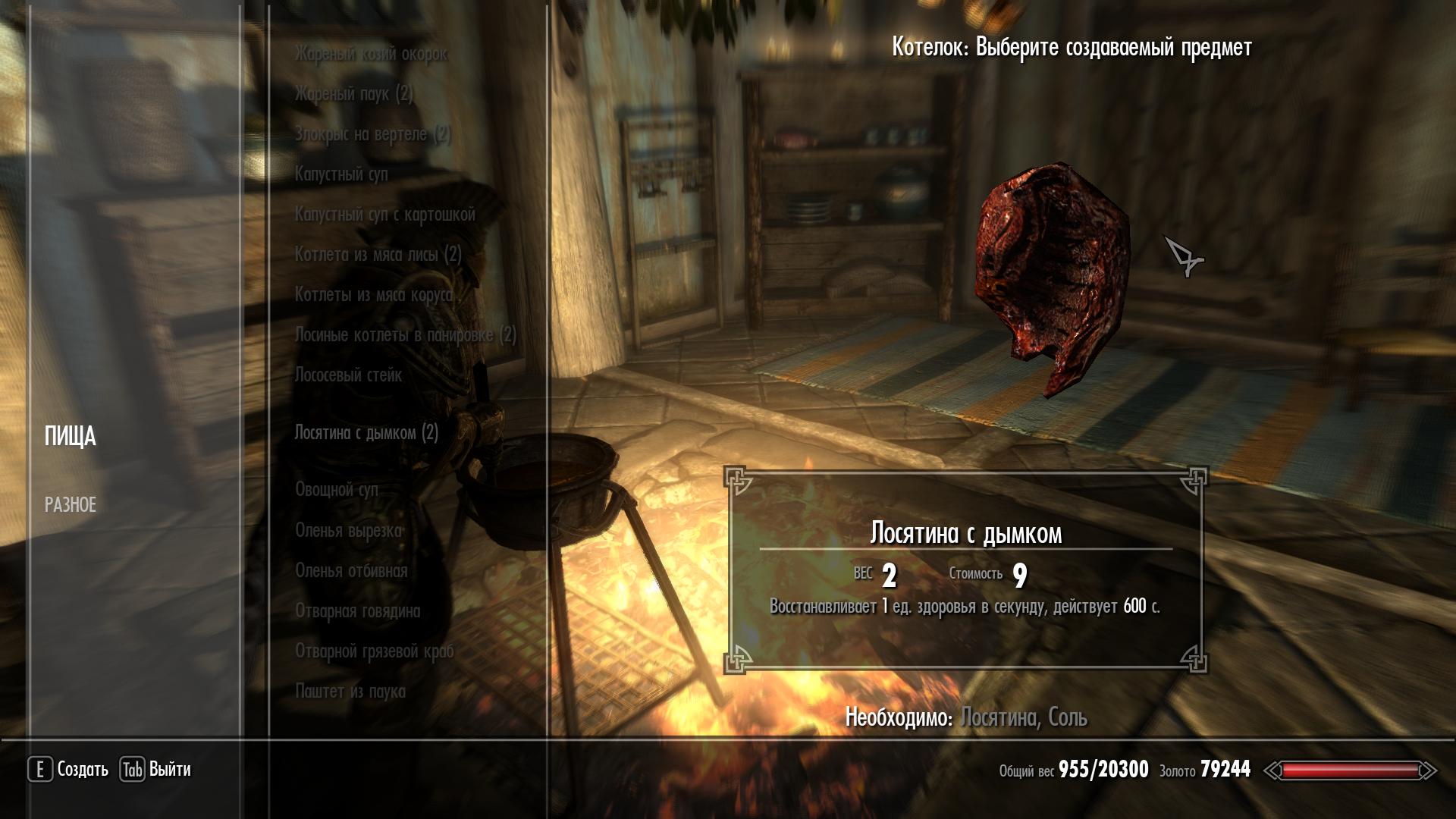 Мод добавляет огромное количество новых блюд. Основная масса блюд доступна сразу же, но есть и скрытые рецепты, которые можно разблокировать, купив за пару золотых книгу "Записки охотника" в Фолкрите у Солафа (Склад "Серые сосны") или сняв галочку в МСМ-Меню, требующую наличия в инвентаре этой книги. Однако я НАСТОЯТЕЛЬНО рекомендую галочку не снимать, а книгу купить и держать в инвентаре. Дело в том, что некоторые рецепты появляются только при соблюдении определенных условий и процедур. В книге они описаны, а без нее вам придется искать их "методом тыка" и я сильно сомневаюсь, что вы найдете их все.