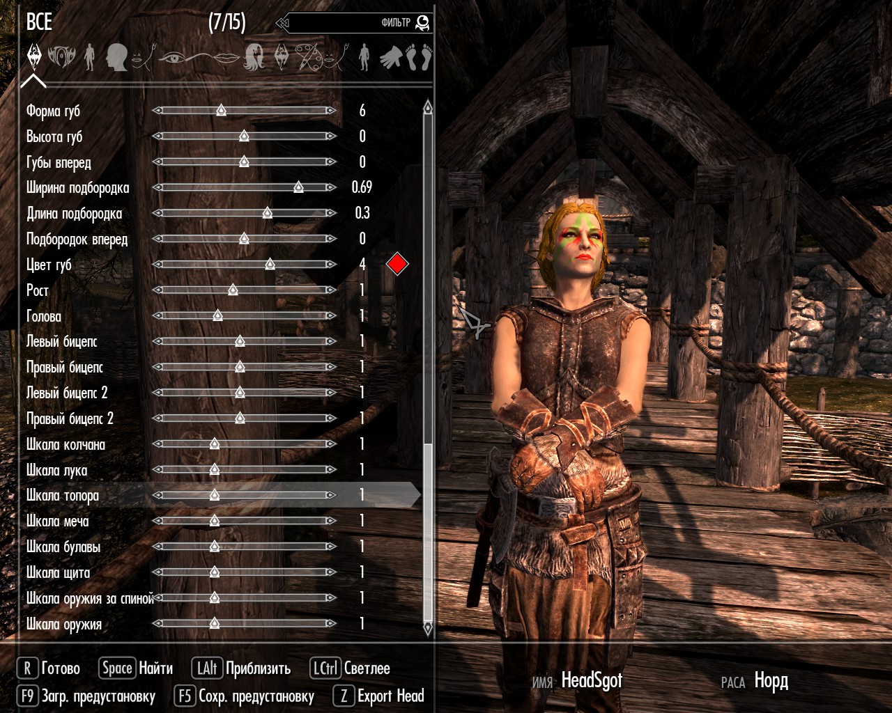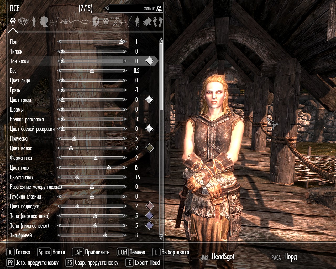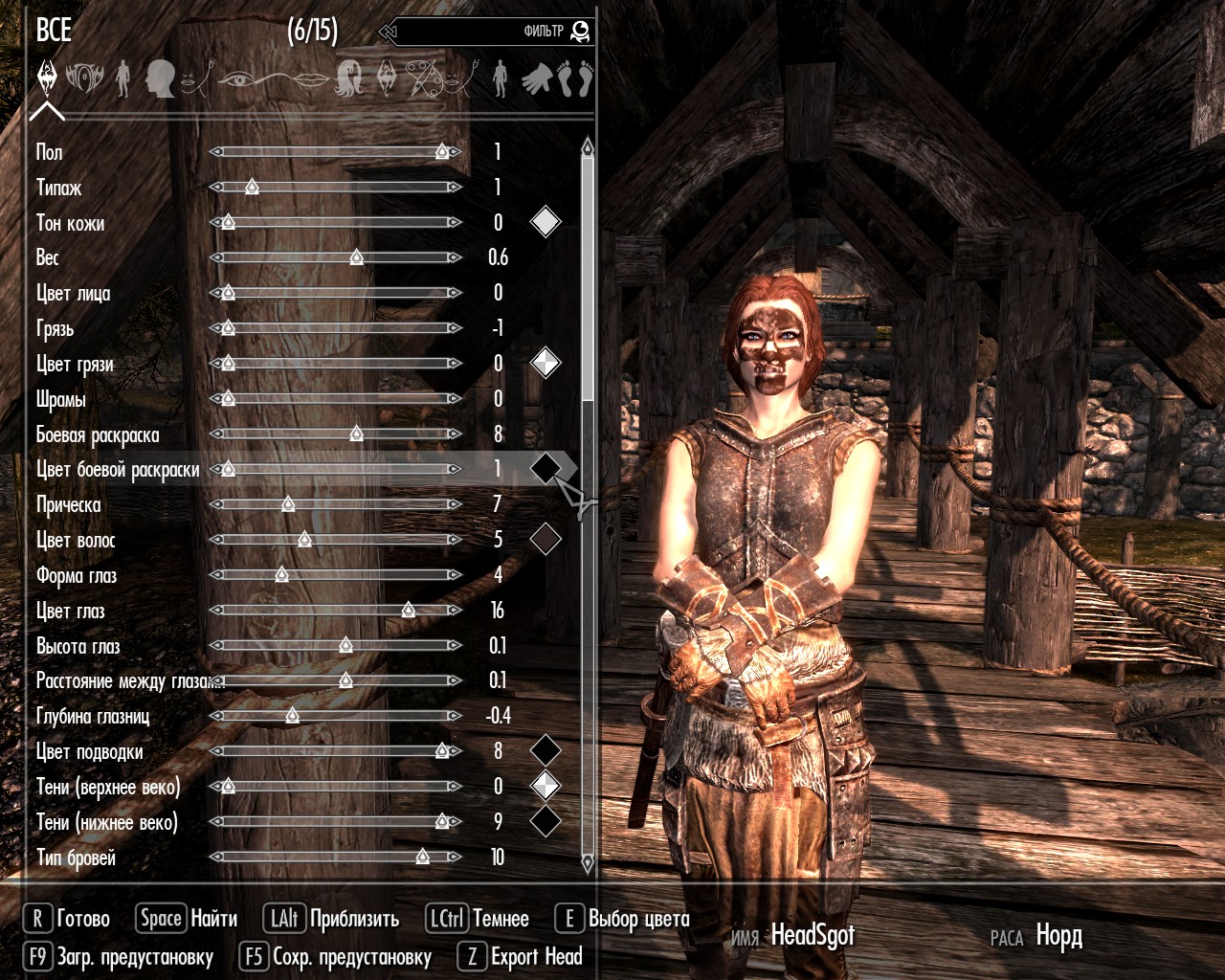 - Настройка своих текстур (можно сделать свой цвет грязи, свой цвет кожи и т.д. Установка своих текстур делается с помощью ромбов напротив некоторых настроек).