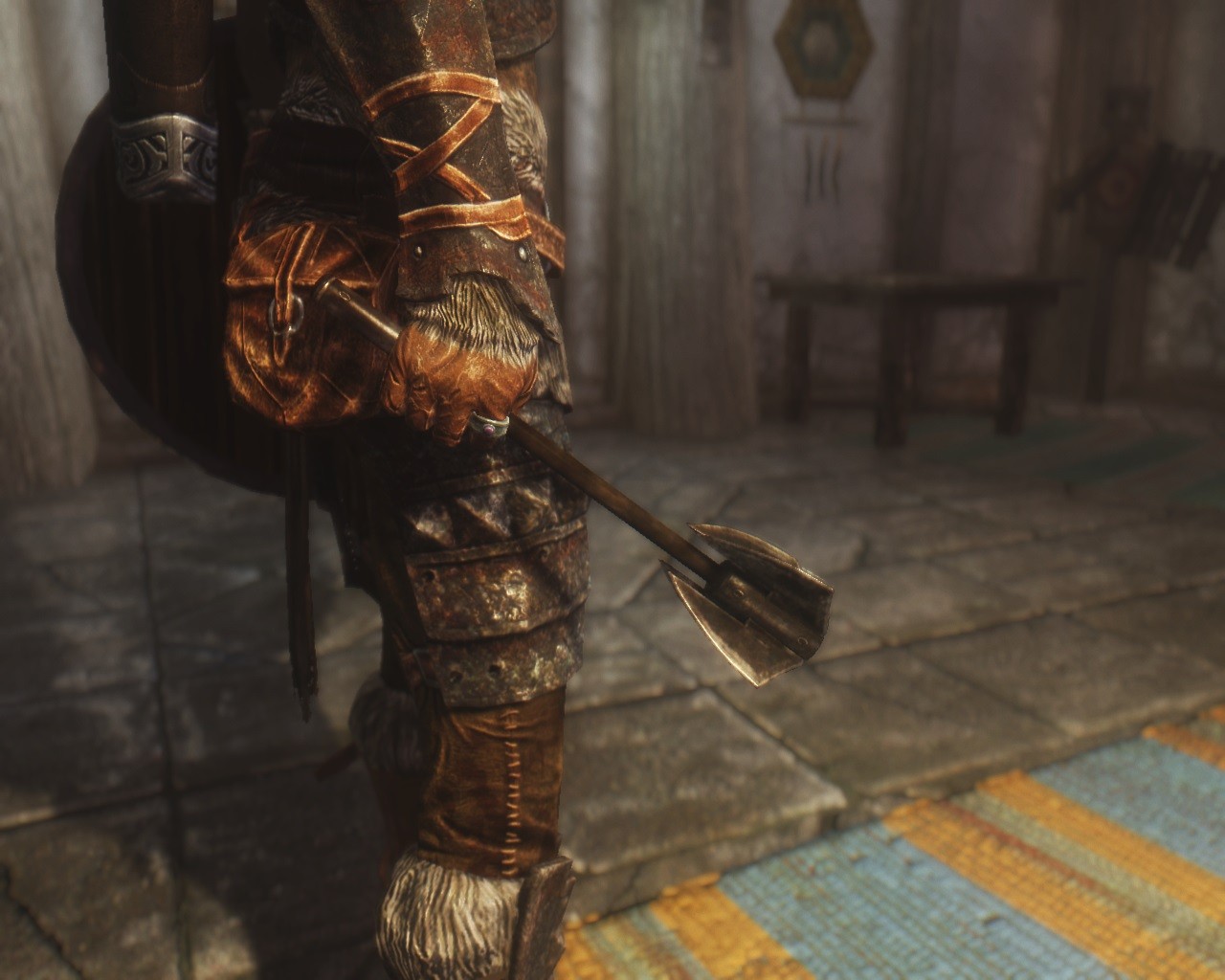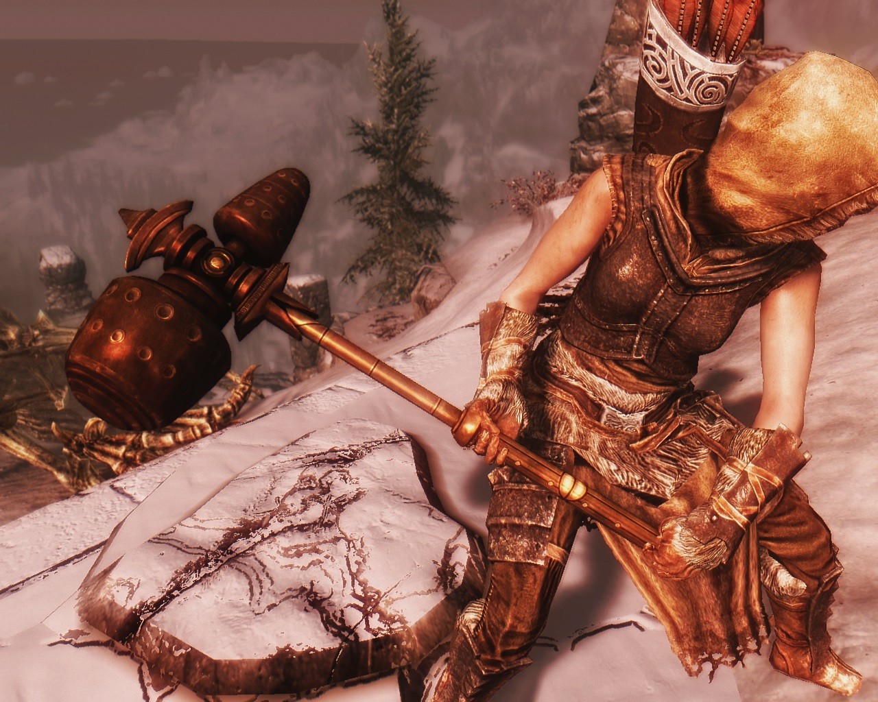 А набалдашник с конца лезвия двемерского топора я бы все же снял.