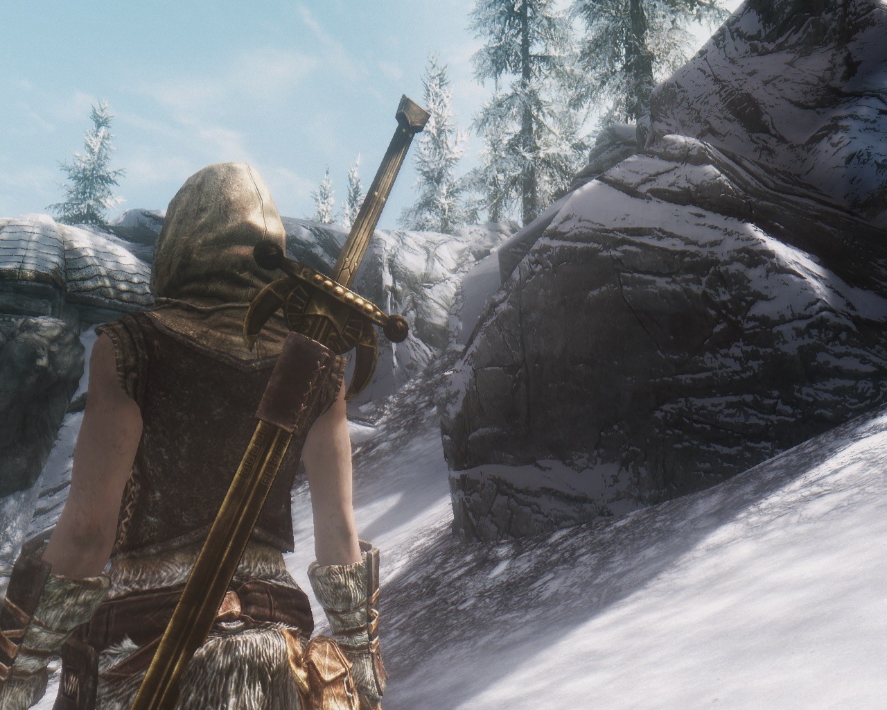 нашел :) даэдрический полумесяц действительно красив, и урон не плохой, НО ! вот как то странно он на спине расположен, висит прям почти на уровне головы как дамоклов меч , или нимб :) есть что то из патчей что могло бы исправить местоположения меча на спине ?