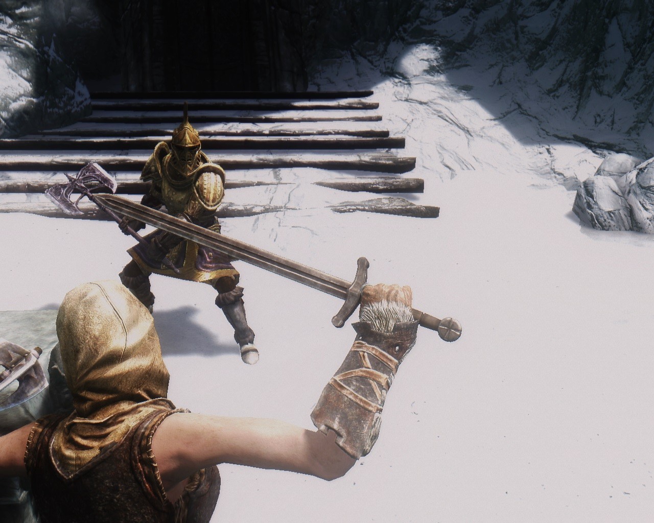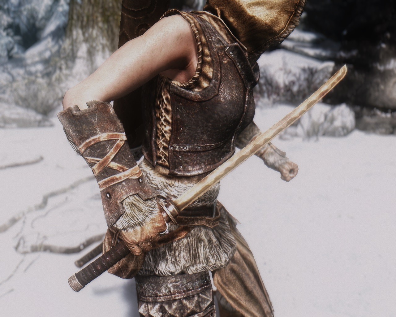 Что в нём лорного так и не понял. Из всего пара может быть ну 1-2 меча более менее, но из-за ENB они будто сломаны по середине.