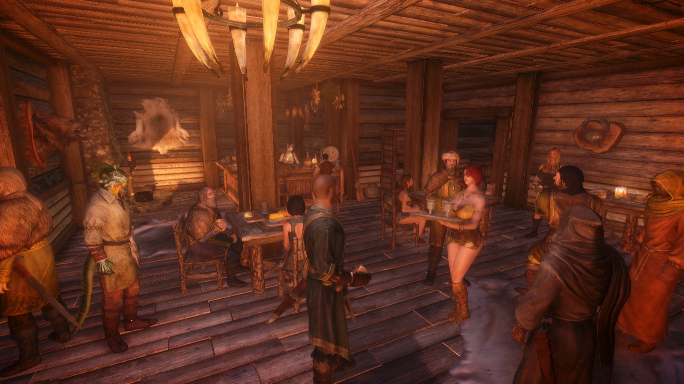 Люблю атмосферные моды) Всегда раздражало, что на артах к Скайриму в тавернах трется толпа народу (и обслуживающий персонал таверны среди них), а в игре - скука и запустение, в лучшем случае один бард-мимопроходимец)