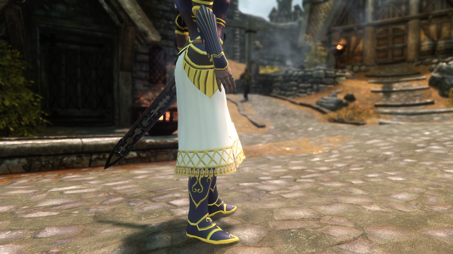 Основной материал - железные слитки и полоски кожи (для юбки нужна шкура снежного волка), я не стал с этим возиться, оставил на будущую доработку в рамках более крупной работы (если она будет).