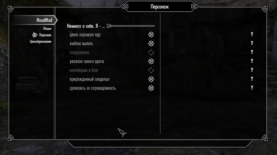 После старта мода, заходим в настройки на вкладку "персонаж" и настраиваем свой характер.