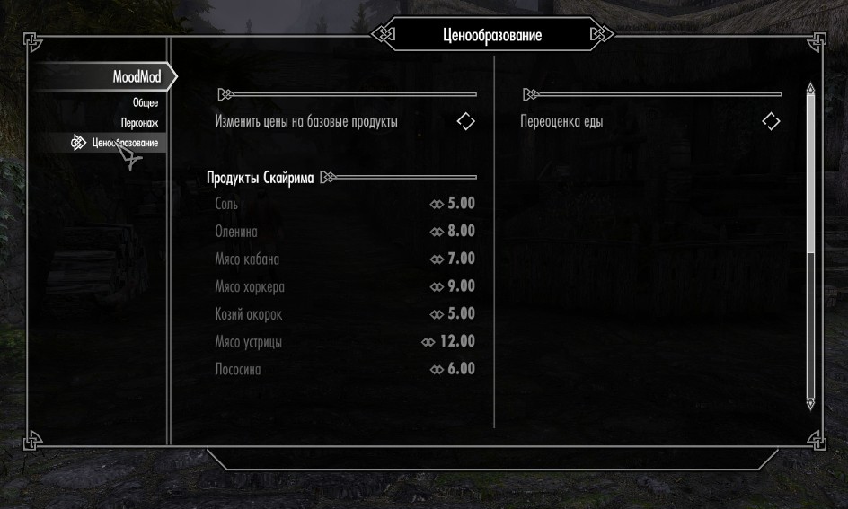 - От потребления еды настроение повышается на ее стоимость (можно корректировать в настройках)