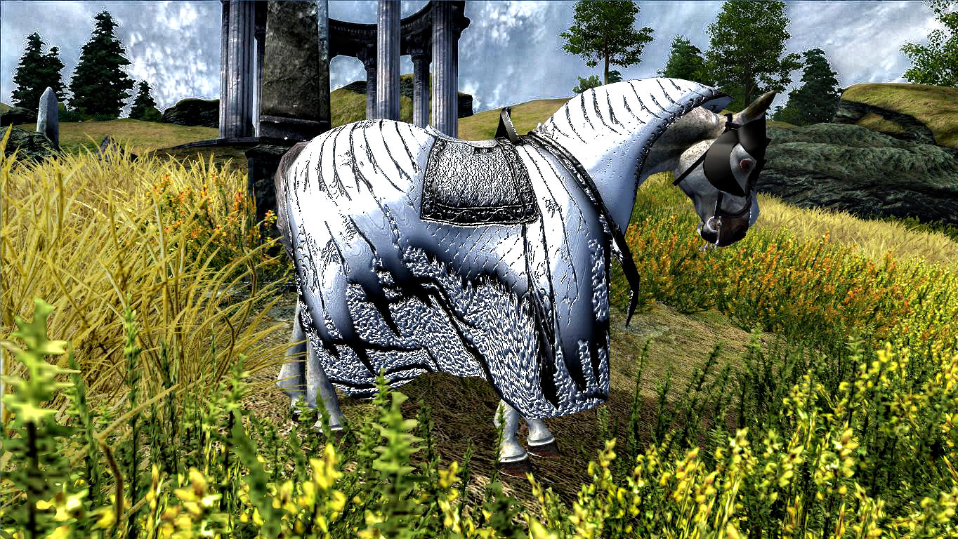 Добавляет Конюшню Лютого, которую вы можете найти к северо-западу от Анвила. Там у девушки Ареша вы сможете приобрести лошадей с новыми разновидностями брони (измененная эльфийская броня и ретекстур) общим числом 7 (пока). Стоимость одной лошади с броней 20000. Одну лошадь можно купить только один раз. именно поэтому они бессмертны.
