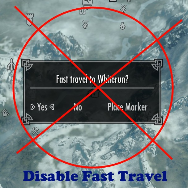 Простенький мод, который убирает Быстрое путешествие, для любителей усложнять Skyrim.