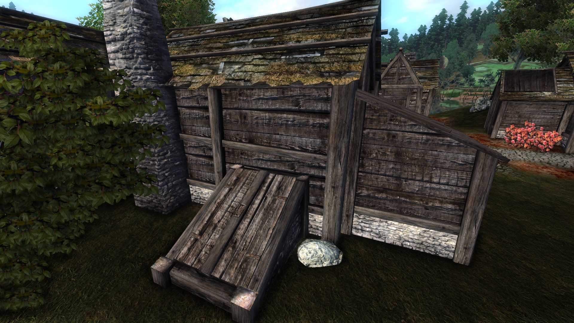 Беседка как всегда создала кучу неотличимых друг от друга текстур, а именно 82, там где можно было обойтись парочкой. Мой мод заменяет модели и текстуры бедных домиков. Модели оптимизированы в ручную, местами, где надо добавлен параллакс, модели ручек у дверей теперь объемные, а не нарисованная лепешка. Заколоченные окна заменены пусть на маленькие, но настоящие окошки. Количество текстур сокращено в четыре раза, качество увеличено. Теперь домики в HD качестве грузят вашу систему меньше чем оригинальные.