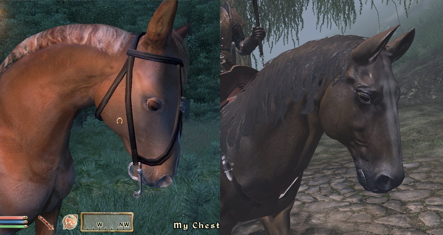 В Кровь и вино есть отличные модельки коняк в "рыцарской" сбруе, может добавить их в облу как альтернативу ванильной лошадиной броне?