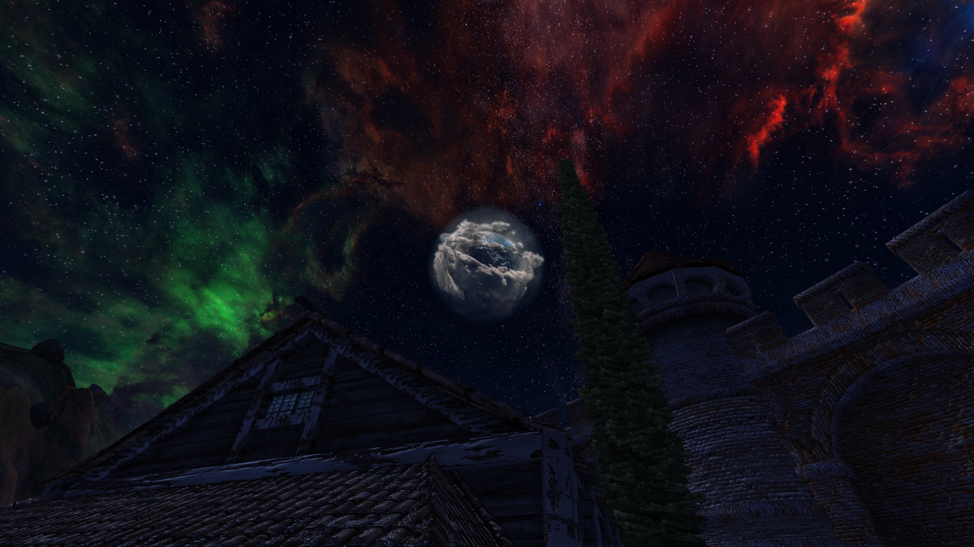 Замена модели звездного неба, замена текстур звезд, млечного пути, туманностей и одной из лун.