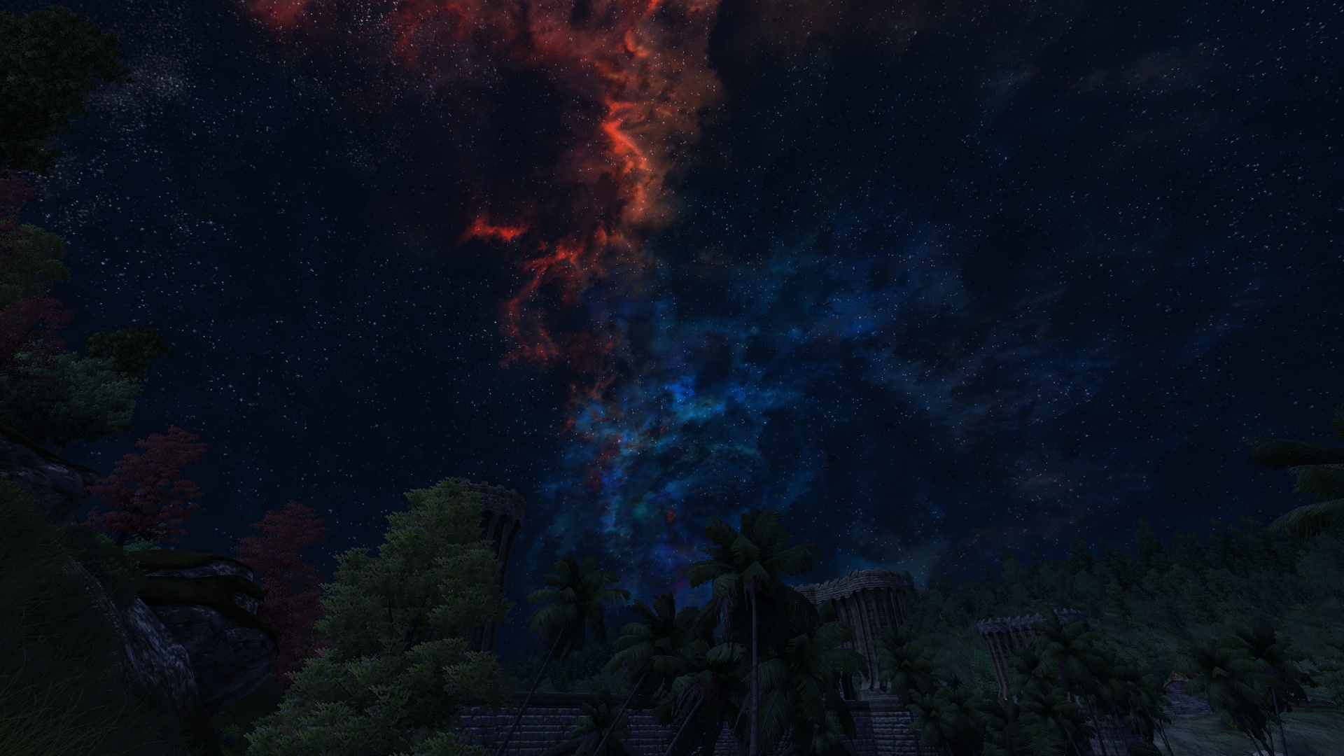 Расположение туманностей и млечного пути на модели неба было исправлено так чтобы они не загораживали друг друга и "плоскости" звезд. Теперь визуально различимы и скоплением звезд в плоскости "нашей" галактики и разноцветные туманности других. Звезды помещены ближе к Нирну, чем галактики и таким образом не располагаются за пределами нашей. Так же все получили новые текстуры.