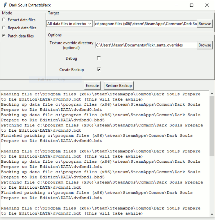 Dark Souls Extract & Pack — это инструмент для распаковки и перепаковки файлов данных для Dark Souls 1, позволяющий легко распространять моды без зависимости от других модов, таких как DSFix. Он полностью поддерживает чтение/запись следующих форматов файлов: