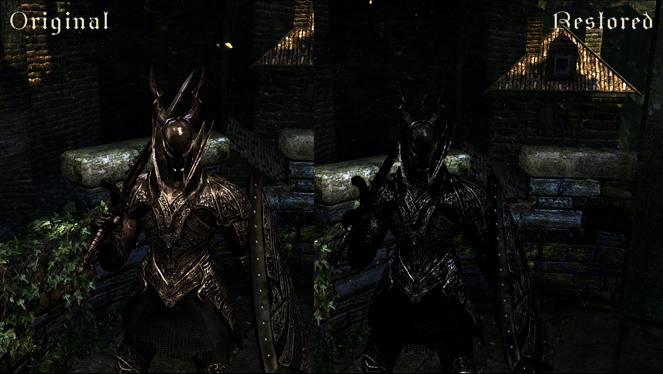 В игре броня черного рыцаря - совсем не черная. Этот пакет текстур исправляет цвет на более соответствующий названию. В папке Опционально - черные текстуры для оружия.