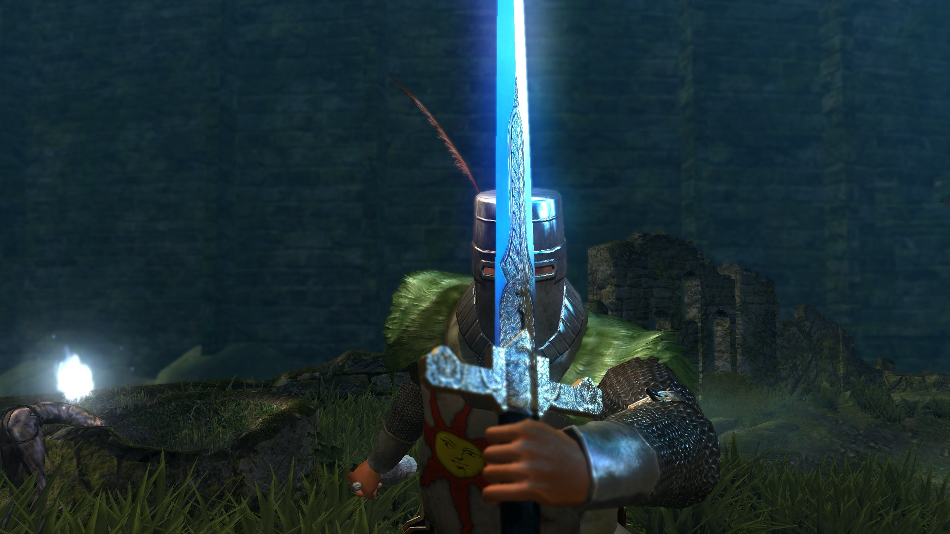 Очень красивый ретекстур светлого прямого меча. Доступно 2 версии: с золотой и серебряной рукоятью.