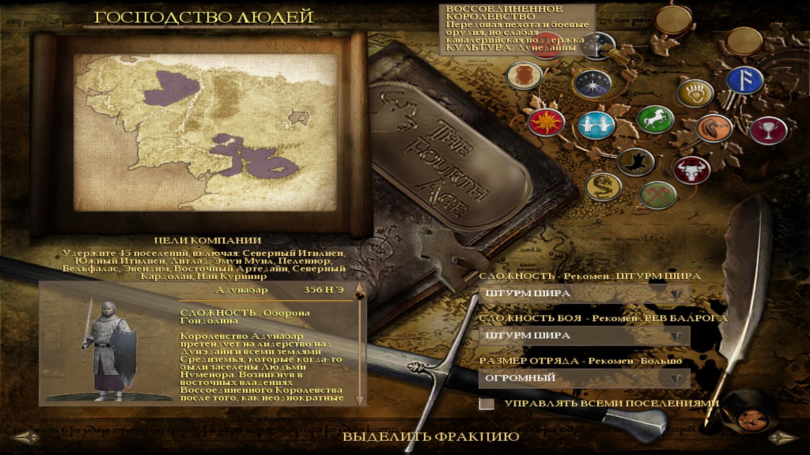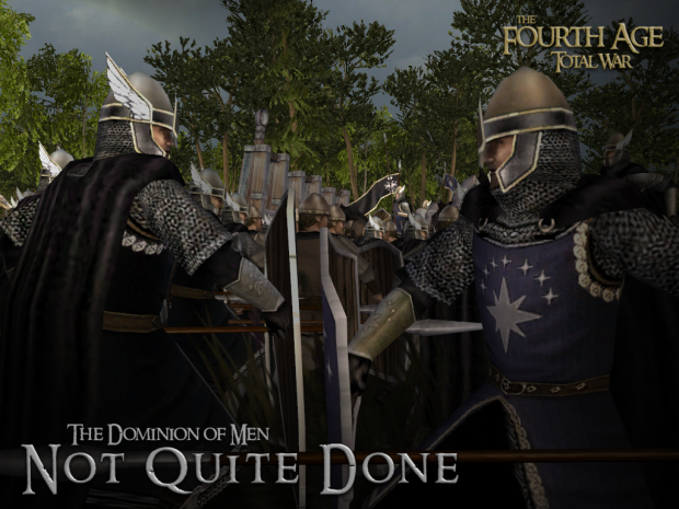 The Fourth Age: Total War - The Dominion of Men - это модификация для Rome: Total War - Barbarian Invasion (v1.6). Модификация начинает игровой отсчет спустя более ста лет после Войны Кольца, до Четвертой Эпохи. Мод основан на произведениях Толкина, и особенно на его незаконченном и заброшенном продолжении "Властелина колец" под названием «Новая тень».