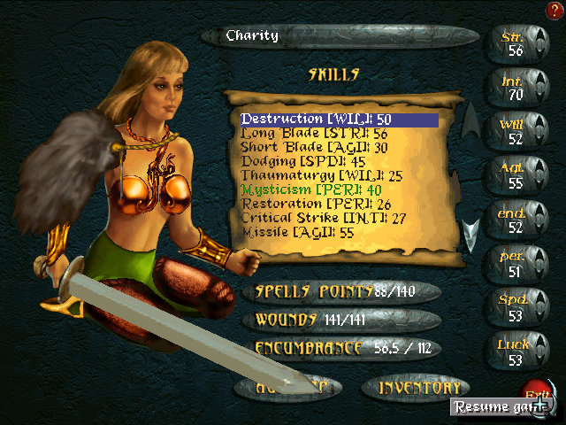 Прохождение идет от лица бретонки по имени Чарити (Charity), для меня ее имя звучит в некотором роде как аналог привычного женского имени Любовь. Класс Чарити - боевой маг. Так что сама судьба привела ее в Шпиль Битвы, и вас, стало быть, тоже, если вы хотите пройти игру и победить Мехруна Дагона быстро и без хлопот.