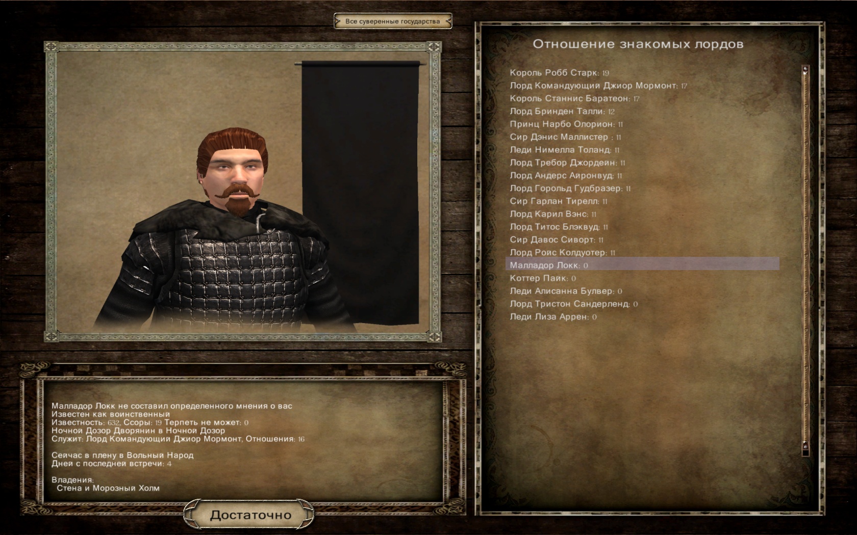 - Расширенная дипломатия, возможность отправлять воронов, занимать деньги у Железного банка и не отдавать долг :D: