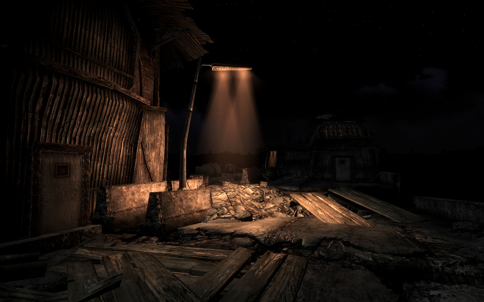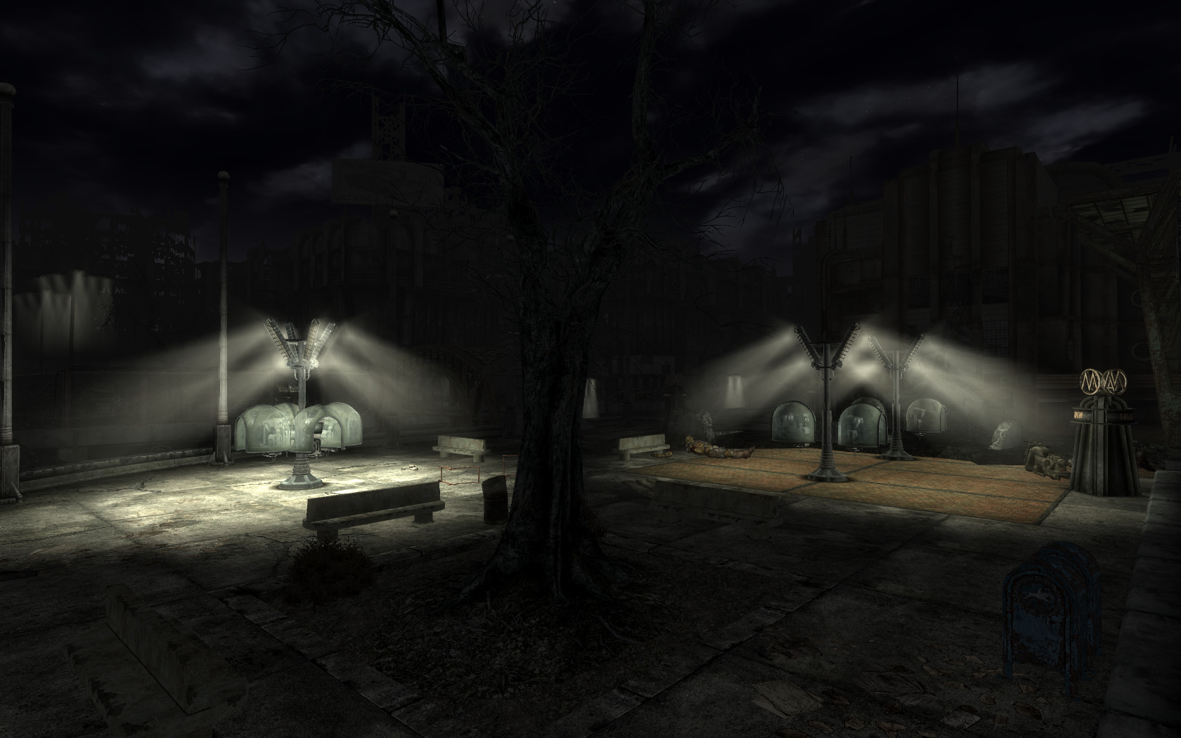 Обновлен до версии 2.0 и теперь включает фонари и вывески не только на руинах Вашингтона, но и по всей пустоши, так же улучшено качество освещения за счет перерисовки glow map. См. скриншоты.