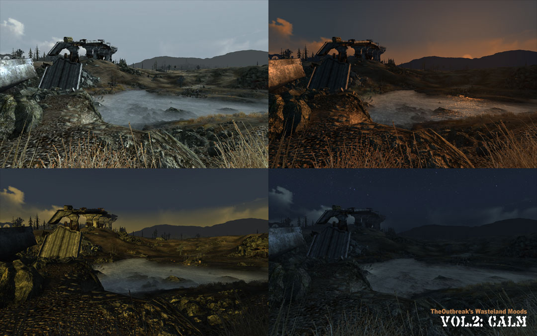 Плагин добавляет в игру огромное количество новых погодных эффектов и полностью заменяет стандартную атмосферу Пустошей. Вы можете установить один понравившийся вам погодный эффект, который будет либо постоянен, либо будет меняться циклично в зависимости от времени суток. Однако вы также можете установить специальный esp, который лежит в папке Weather Controller, он добавит в игру прибор, с помощью которого вы можете автоматически настраивать желаемую погоду. Помимо этого вы можете изменить подсветку Пип-Боя в зависимости от установленного погодного эффекта – папки Extras. Выбранный esp с погодным эффектом должен загружаться в самую последнюю очередь в порядке загрузки.