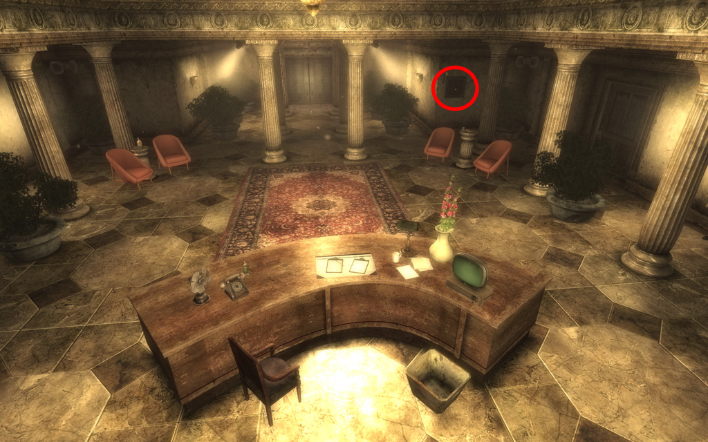 Броня подойдет как мужскому, так и женскому персонажу. Найти её вы можете в холле Тенпенни-Тауэр, смотрите скриншот, если у вас возникают проблемы с поиском.