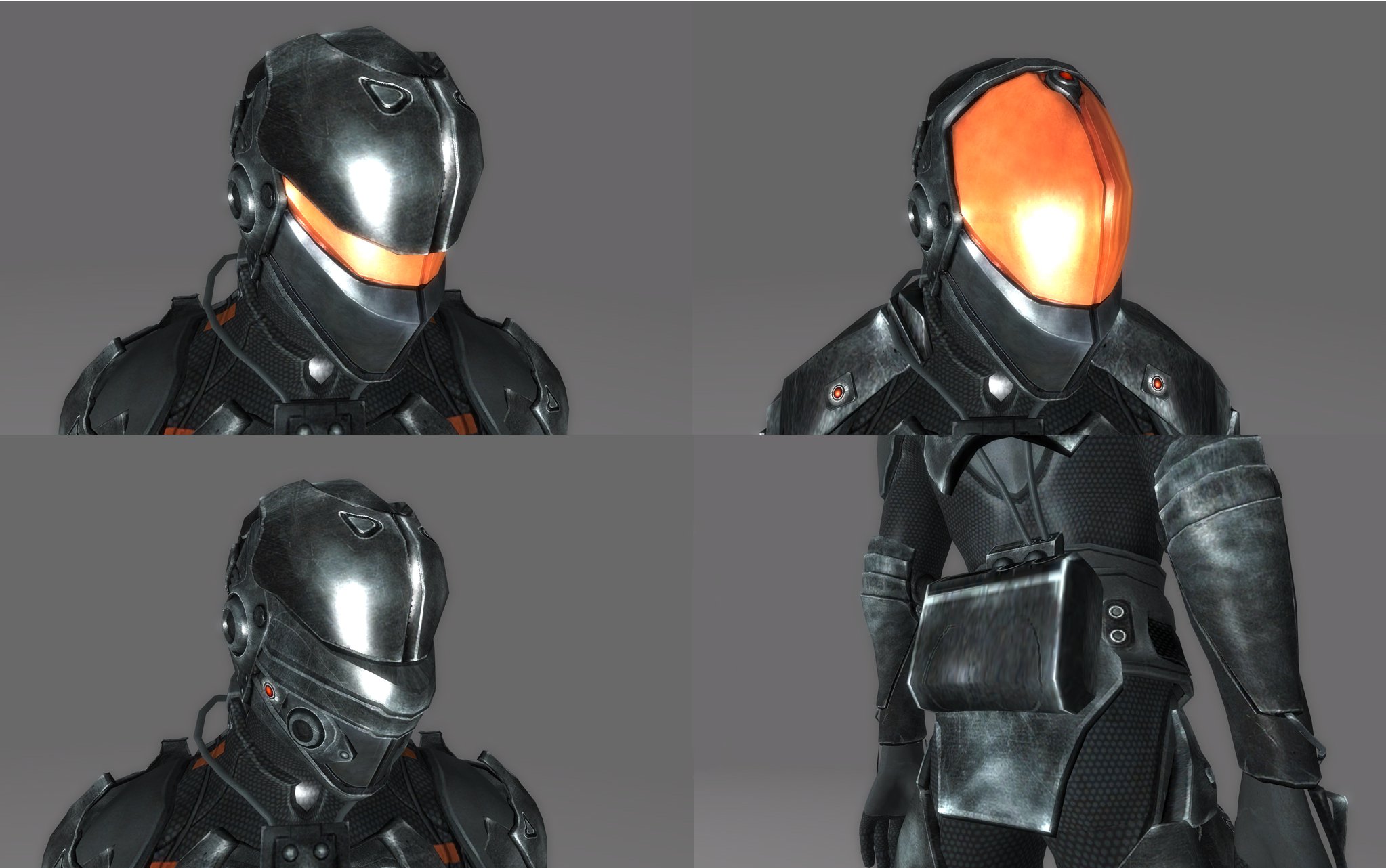 Данный плагин добавляет в игру новую броню, которая подойдет как мужским, так и женским персонажам. Мод включает в себя: пять бронекостюмов, различные приспособления к ним и три шлема. Экипировав броню вы сможете включать невидимость, для этого достаточно нажать "С", а если вы экипируете шлем, то можно пользоваться ПНВ, который активируется кнопкой "Т" (N).