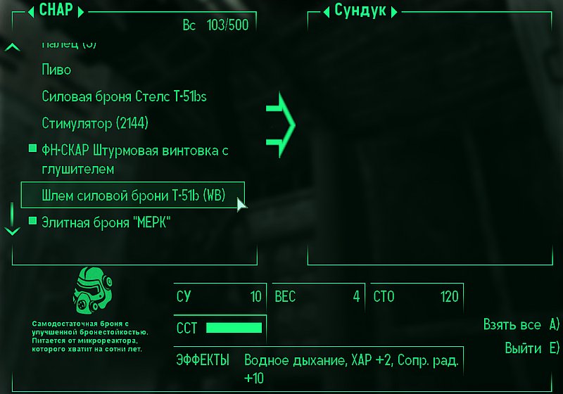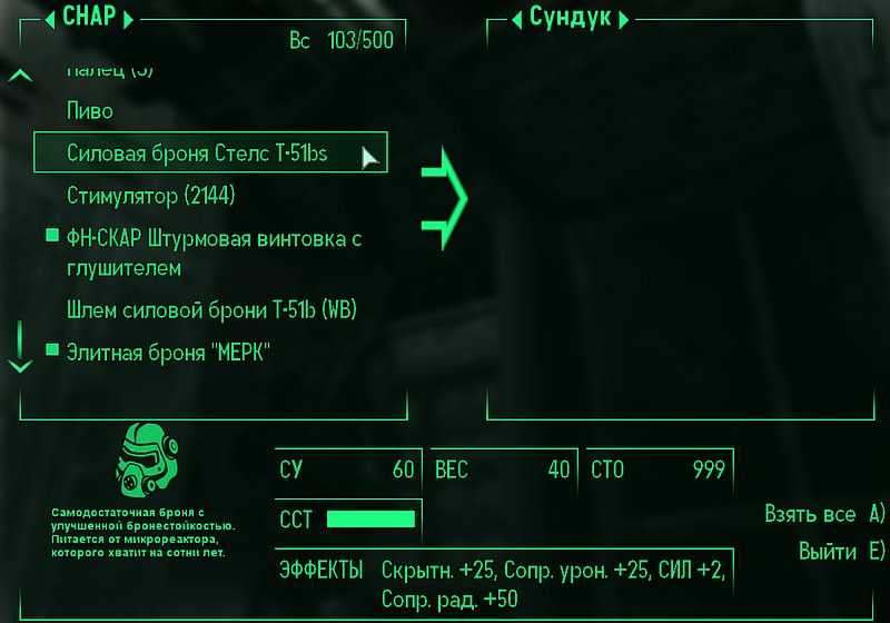 Мод добавляет в игру новую стелс-версию силовой брони T51b. В моде - T51bs.