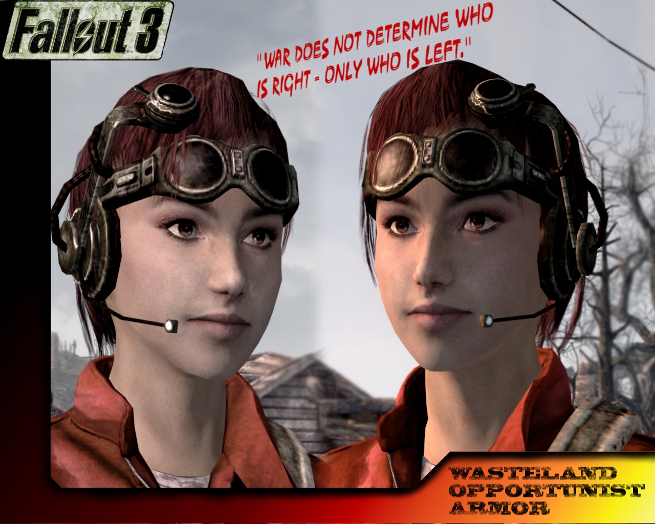 Мод добавляет в игру неплохой комплект брони, которая прекрасно впишется в суровый постъядерной мир. Снаряжение подойдет как женскому, так и мужскому персонажу. Найти все вы можете в сундуке за разрушенной закусочной в Грейдиче, у северной стороны начальной школы Спрингвейла, возле мусорных баков и в Большом городе, за клиникой Рыжей среди импровизированной свалки мусора. В папке Optional Files лежат модели головного убора, с гарнитурой размещённой слева.
