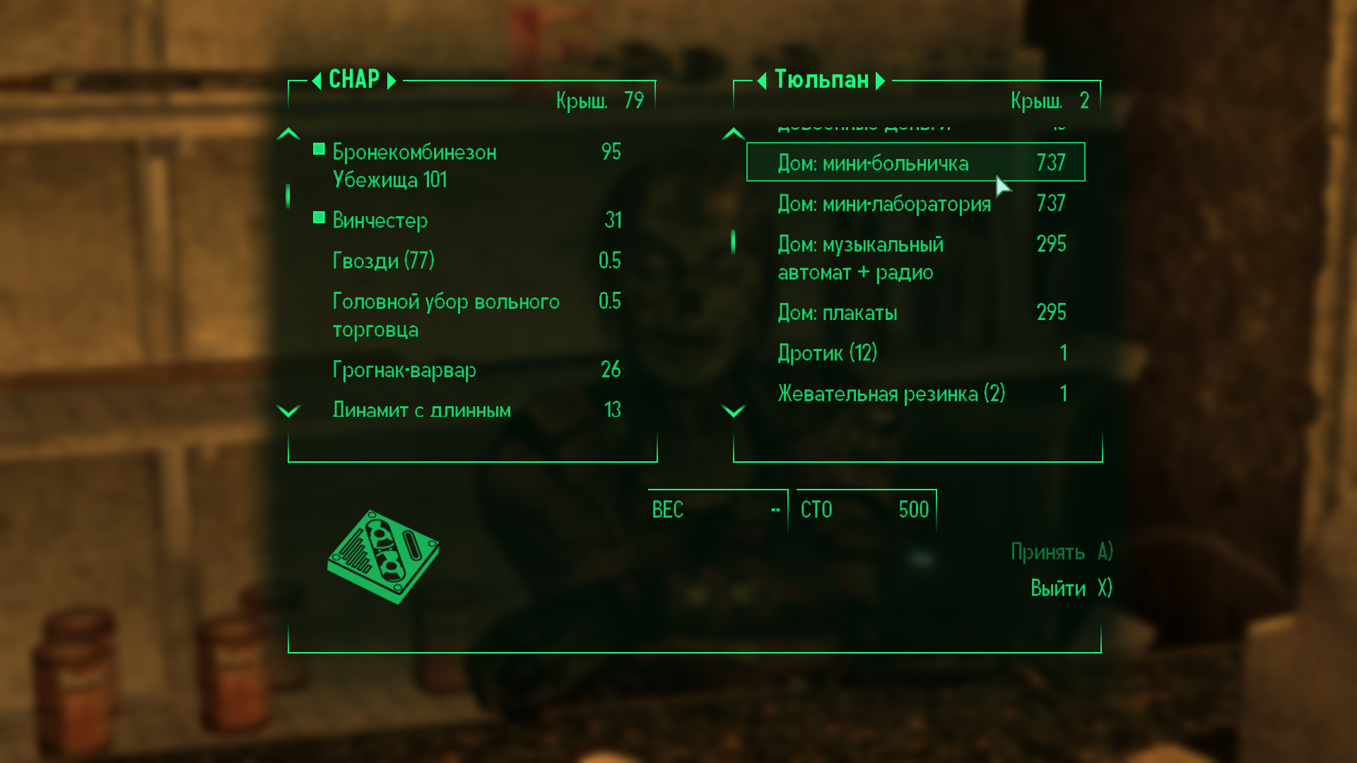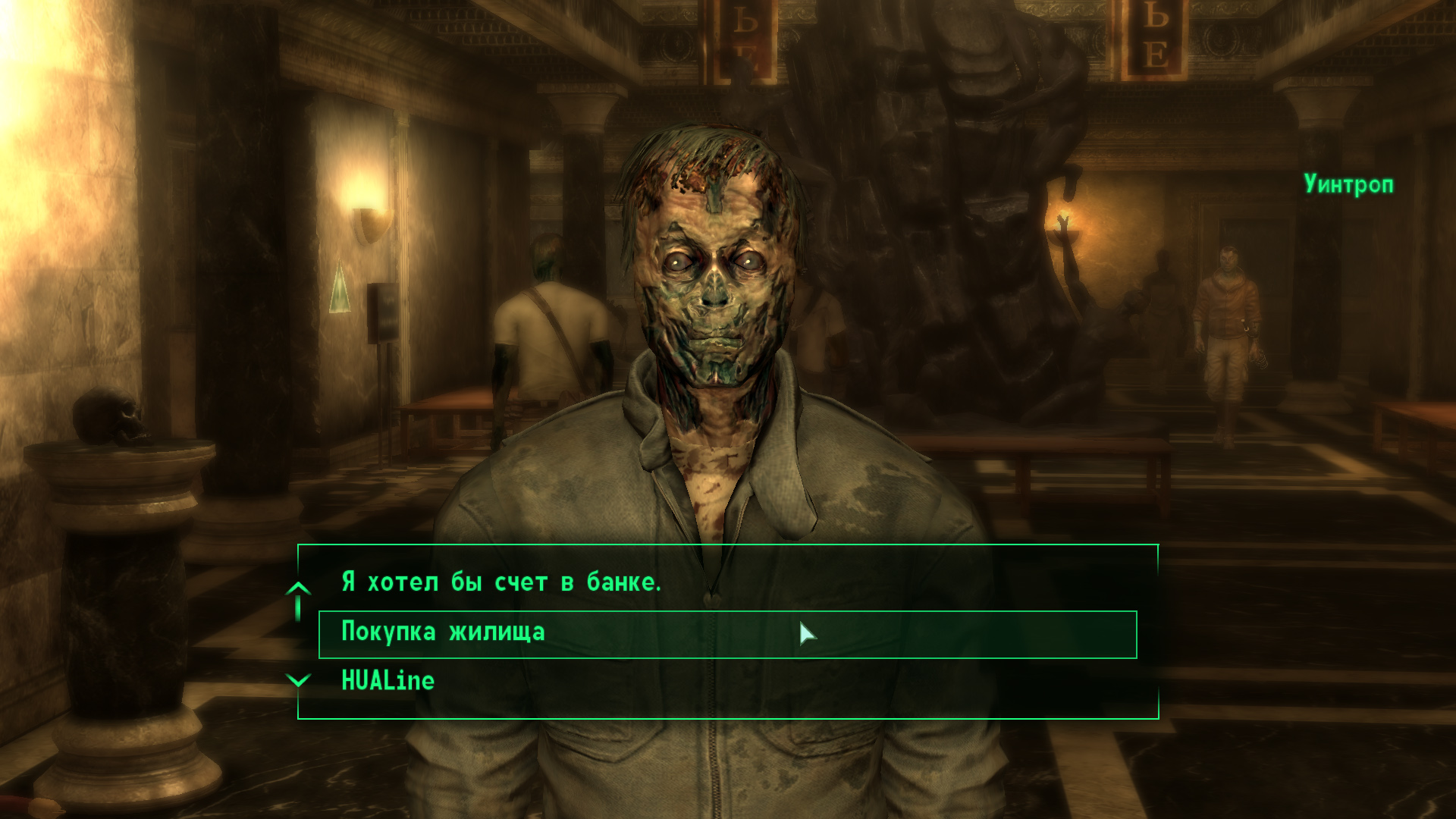 Мод в классическом стиле Bethesda. Поговорите с Уинтропом о покупке жилища (помещения) в холе исторического музея, с последующим приобретением модулей у торговца, как в Мегатоне.